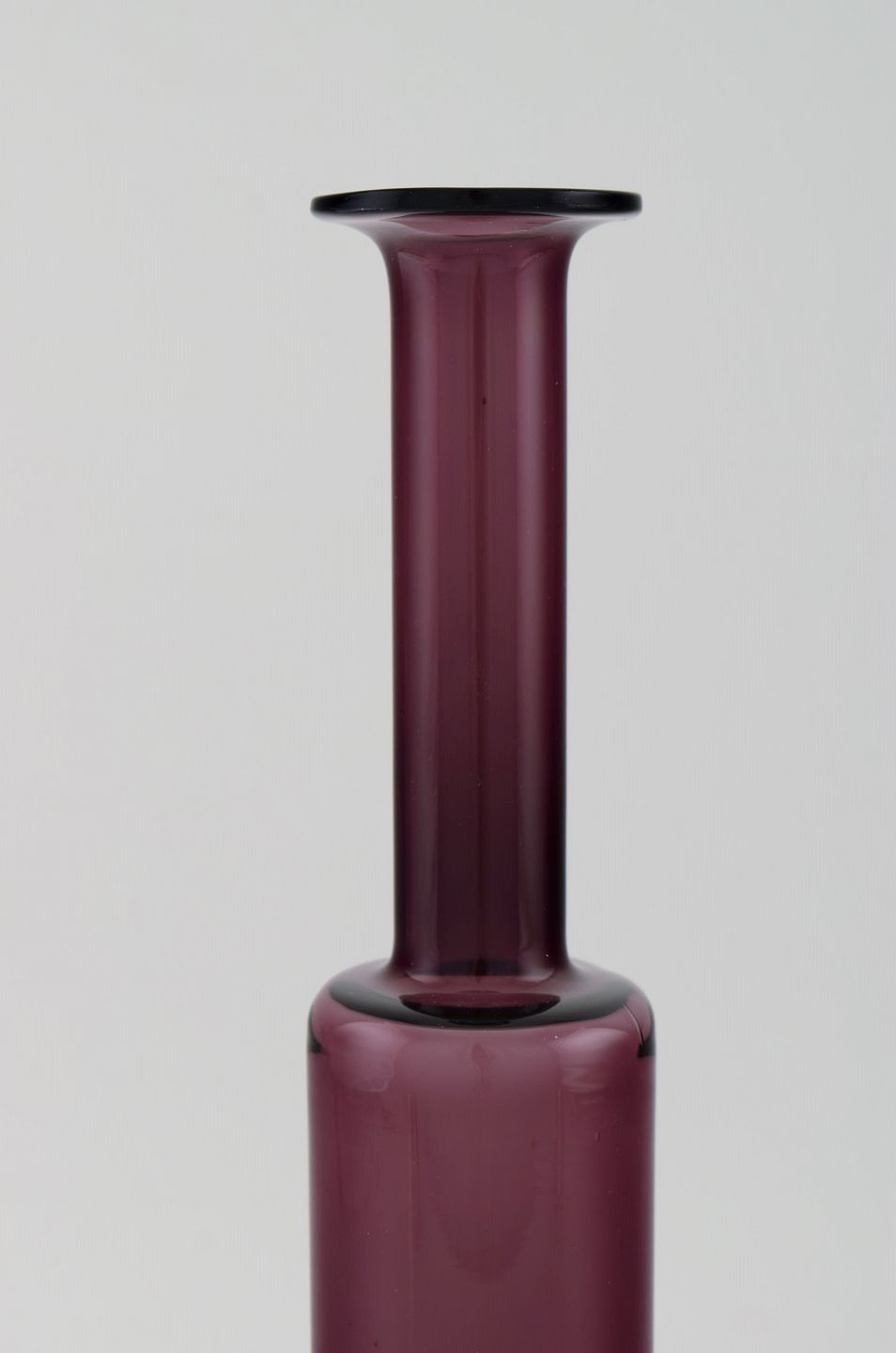 Nanny Still (1926-2009) for Riihimäen Lasi. Vase i lilla mundblæst kunstglas. Finsk design, 1960'erne. Måler: 32,7 x 6 cm. I flot stand. Signeret.
