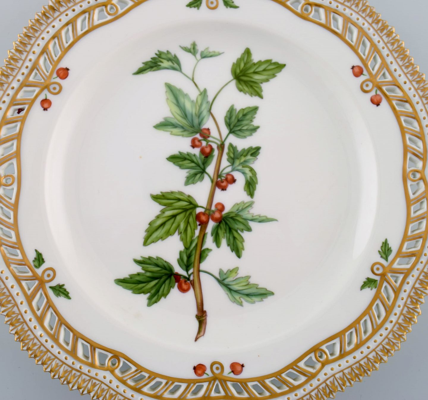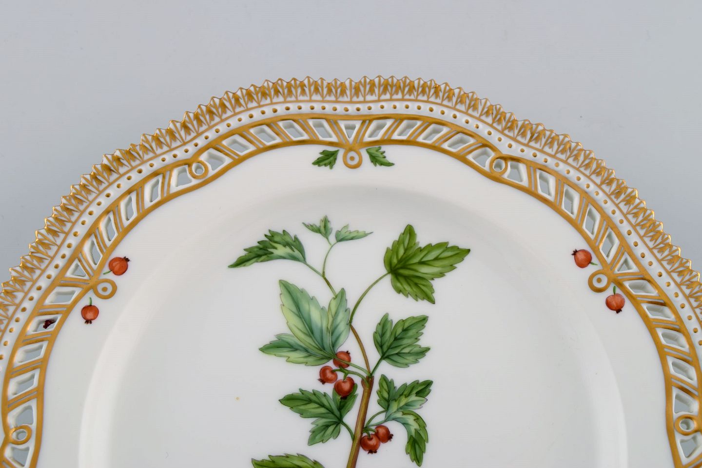 Royal Copenhagen Flora Danica gennembrudt tallerken i håndmalet porcelæn med blomster og gulddekoration. Modelnummer 20/3554. Diameter: 23 cm. I perfekt stand. 1. Sortering. Stemplet.