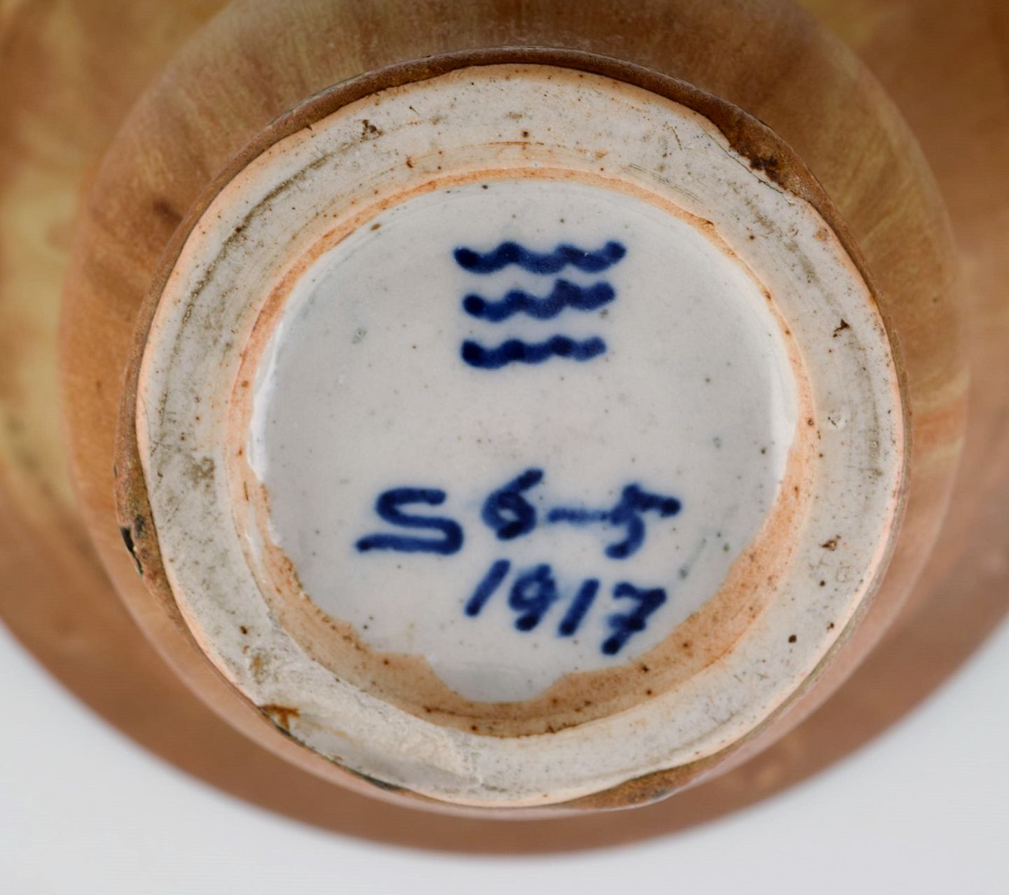 Patrick Nordstrøm/Carl Halier for Royal Copenhagen. Antik unika vase i glaseret keramik. Smuk glasur i lyse brune nuancer. Dateret 1917.