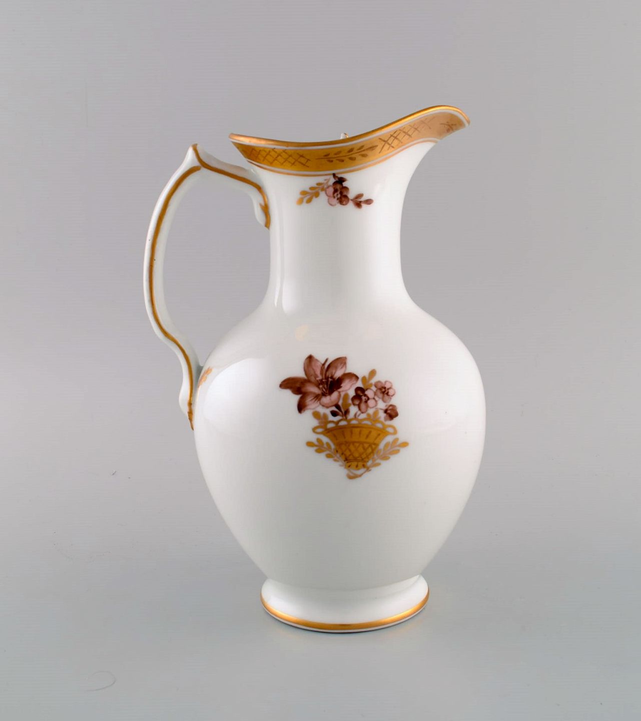 Royal Copenhagen Guldkurv chokoladekande i porcelæn med blomster og gulddekoration. Modelnummer 595/9424. Tidligt 1900-tallet. Måler: 23 x 16 cm. I flot stand. Stemplet. 1. Sortering.