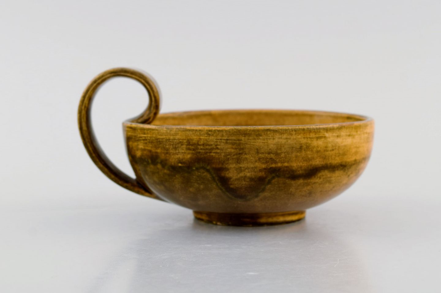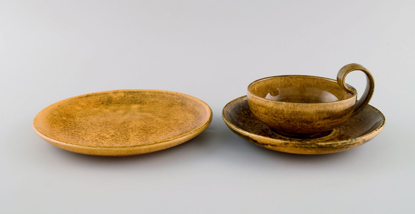 Kähler, HAK. Egoist tesæt i glaseret stentøj. Smuk gul uranglasur. Midt 1900-tallet.