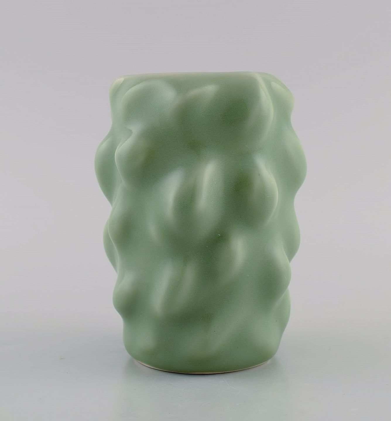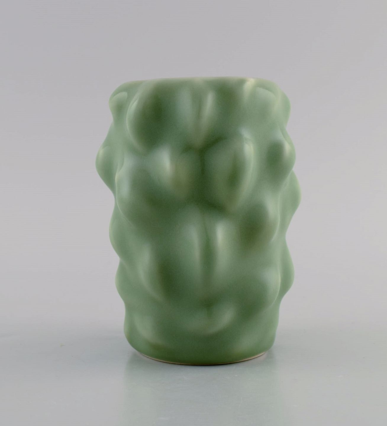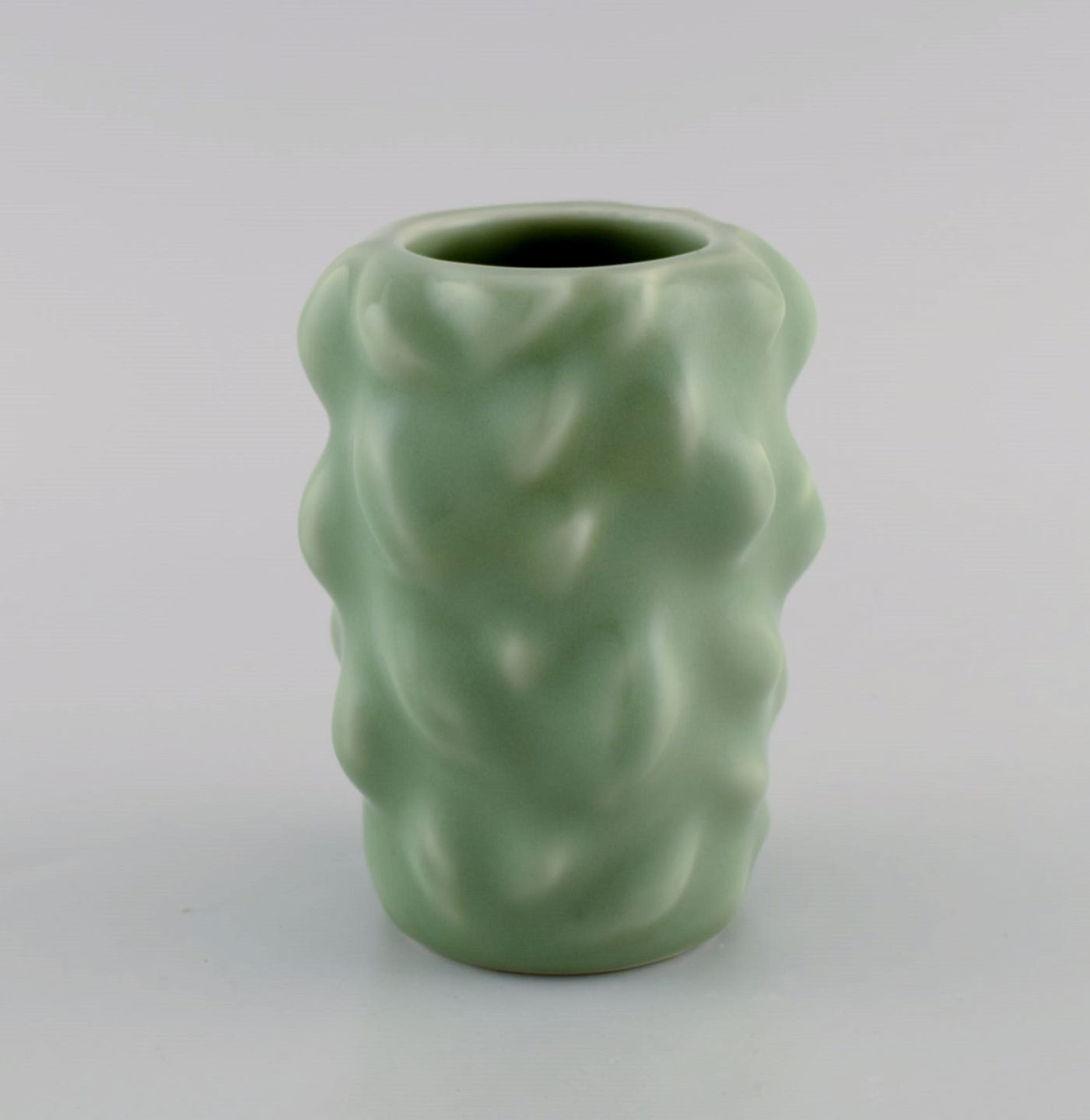 Axel Salto for Royal Copenhagen. Early vase in glazed stoneware. Budded style. Beautiful celadon glaze. 1930s / 40s. Signed Salto. Measures: 12 x 9.5 cm. In perfect condition. 1st factory quality.