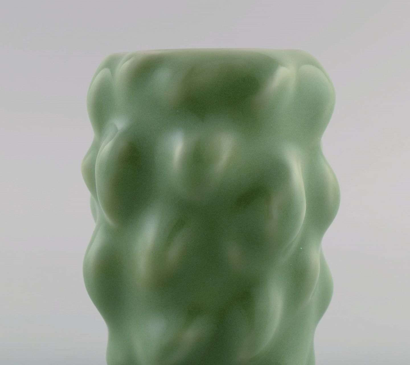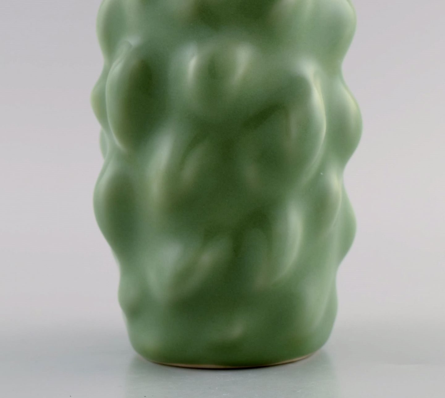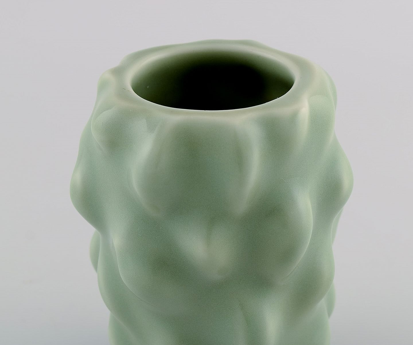 Axel Salto for Royal Copenhagen. Early vase in glazed stoneware. Budded style. Beautiful celadon glaze. 1930s / 40s. Signed Salto. Measures: 12 x 9.5 cm. In perfect condition. 1st factory quality.