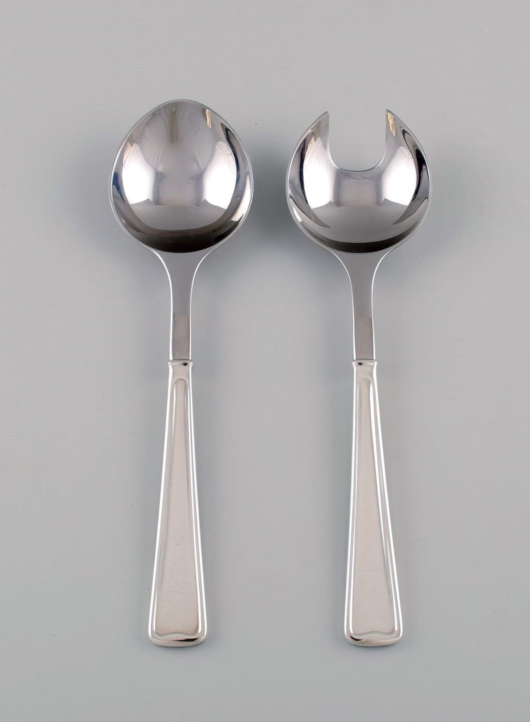 Sjældent Georg Jensen Koppel bestik. Salatsæt i sterlingsølv og rustfrit stål.