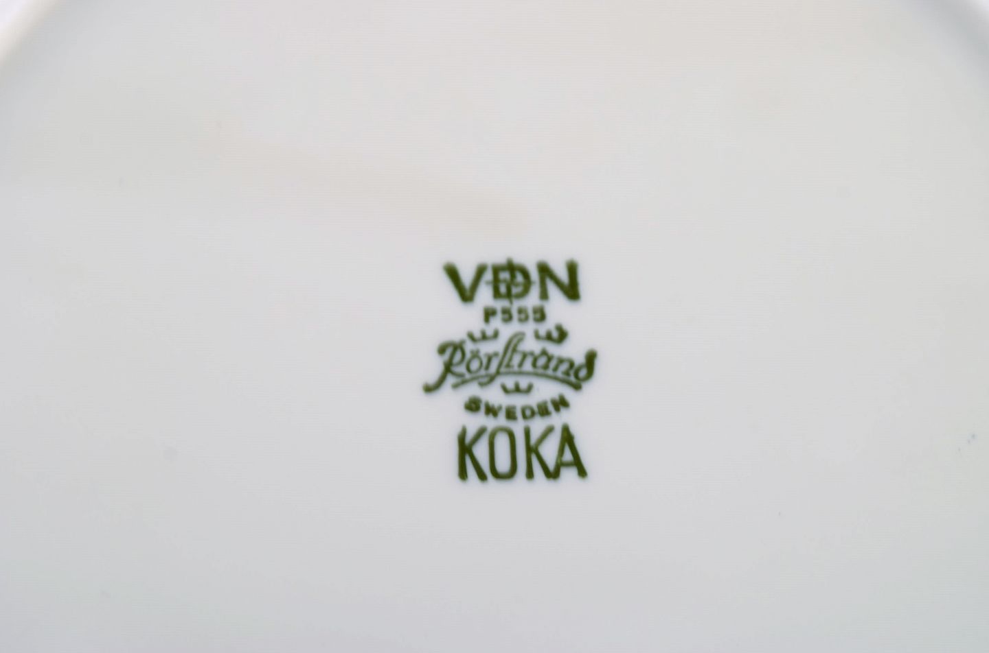 Hertha Bengtson (1917-1993) for Rörstrand. Otte Koka frokosttallerkener i glaseret stentøj. 1960'erne.