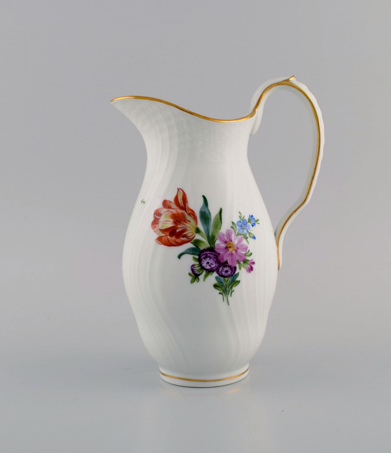 Royal Copenhagen Saksisk Blomst kande i håndmalet porcelæn med blomster og gulddekoration. Modelnummer 493/1609. Tidligt 1900-tallet. Måler: 20,5 x 15 cm. I flot stand. Stemplet. 2. sortering.
