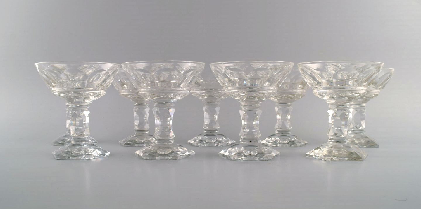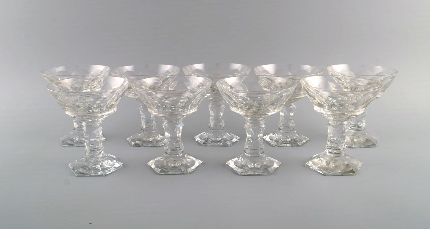 Baccarat, Frankrig. 9 art deco champagneskåle i klart mundblæst krystalglas. 1930'erne. Måler: 12 x 11 cm. I flot stand.