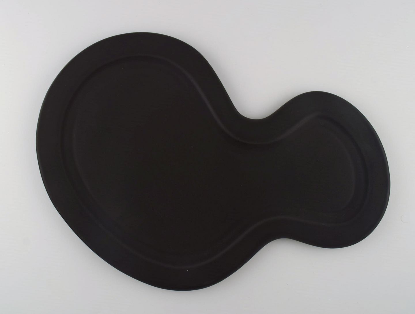 Britisk design. Fem store freeform tallerkener i sortglaseret porcelæn. Sent 1900-tallet.