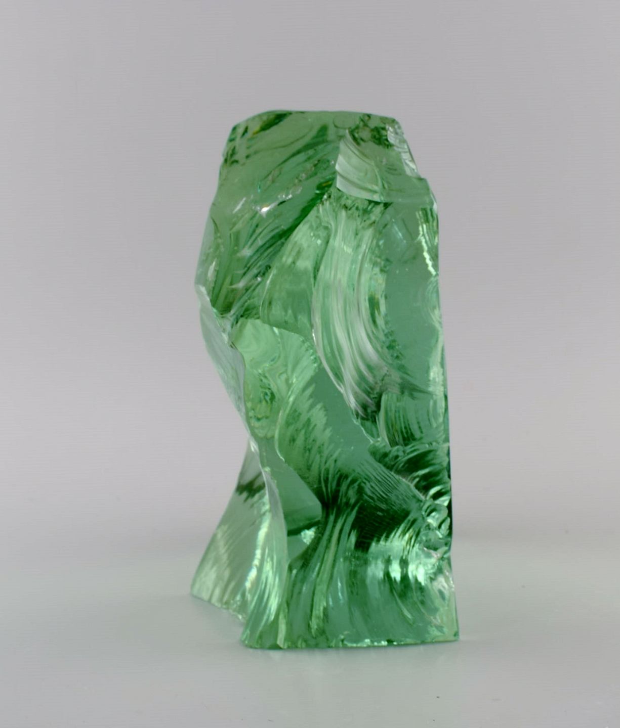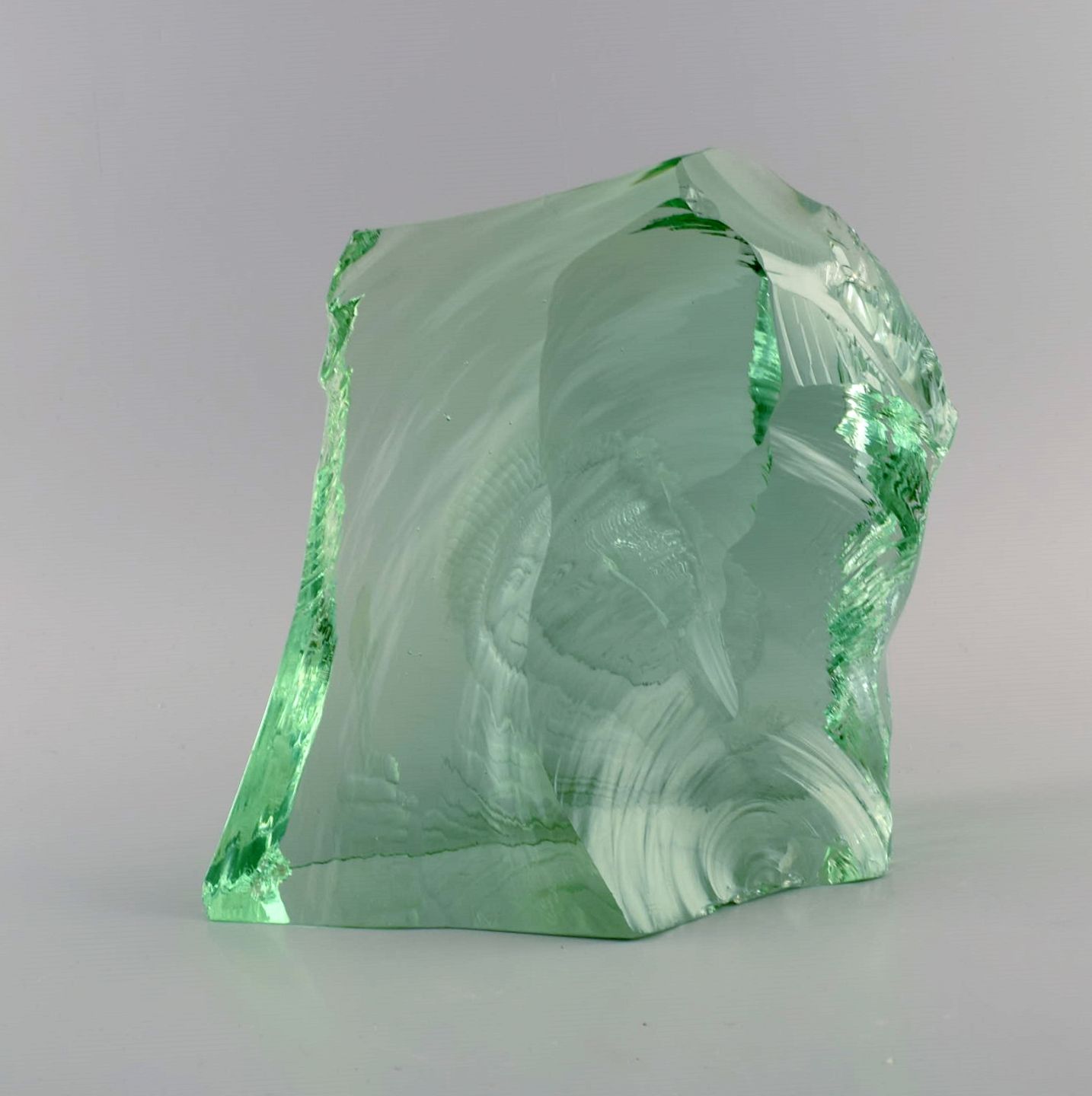 Vicke Lindstrand (1904-1983) for Kosta Boda. Unika mundblæst glasblok dekoreret med eskimo. 1960'erne. Måler: 21 x 20 x 10,5 cm. I flot stand. Lille skår på kanten. Signeret.