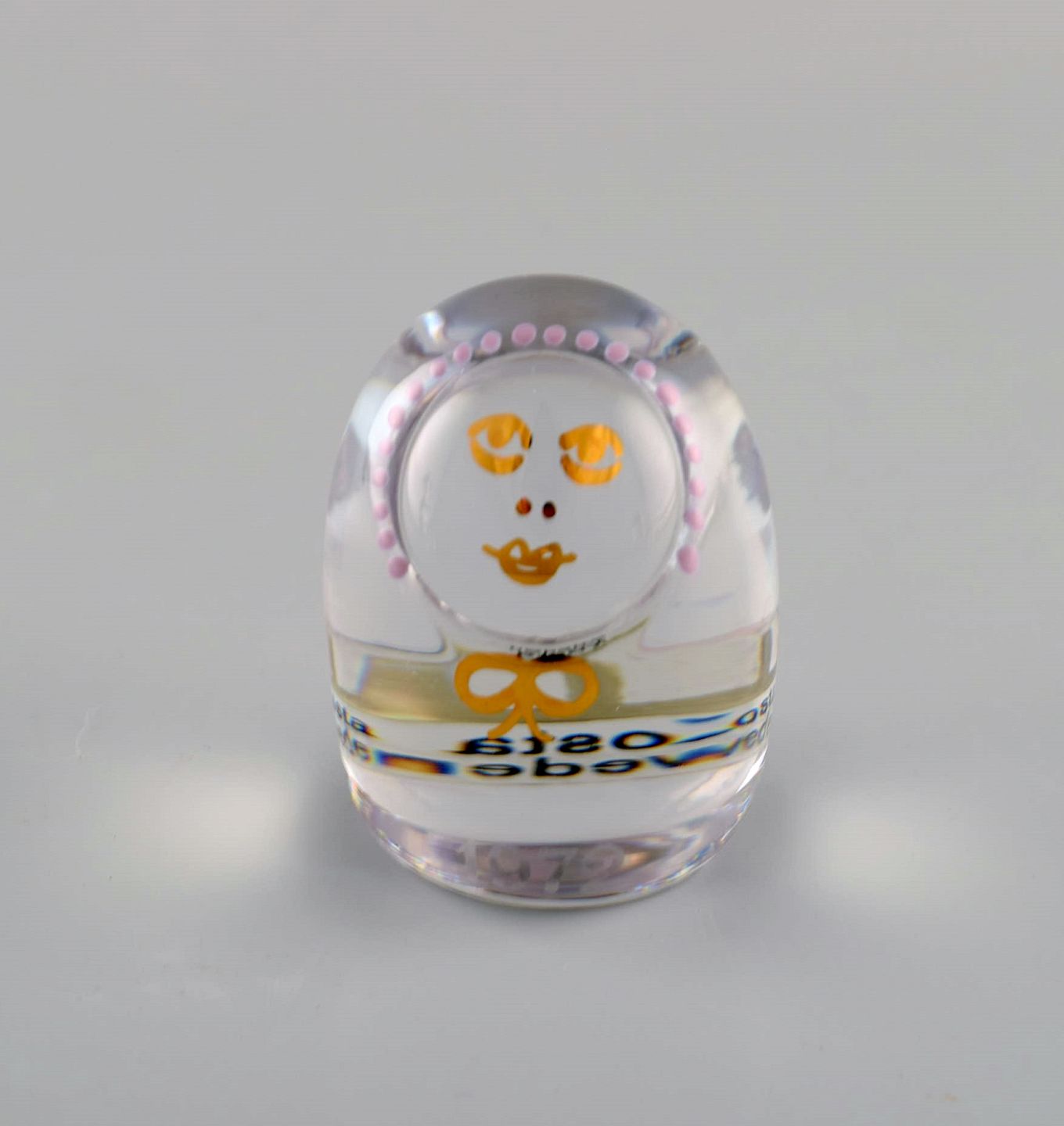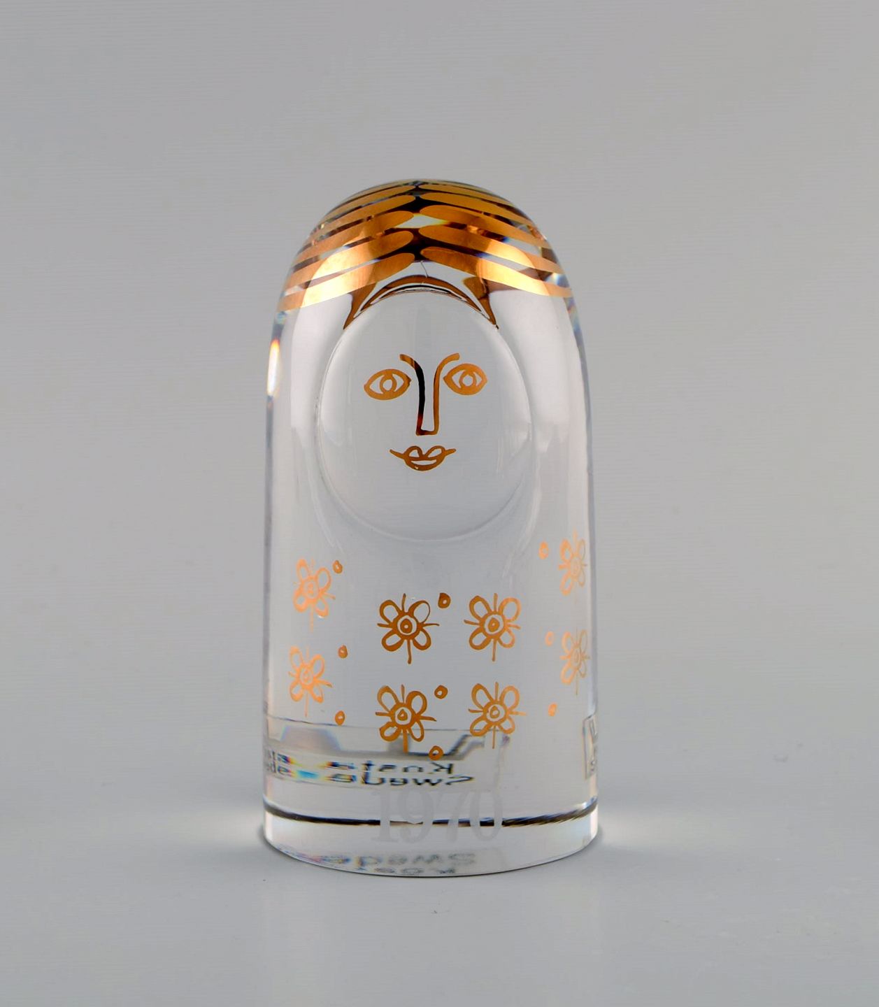 Kosta Boda, Sverige. Tre kunstglas figurer med graveret og håndmalet dekoration. "Familien". 1970'erne. Største måler: 12 x 6 cm. Mærket med årstal. I perfekt stand.