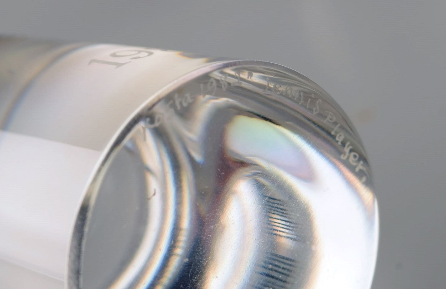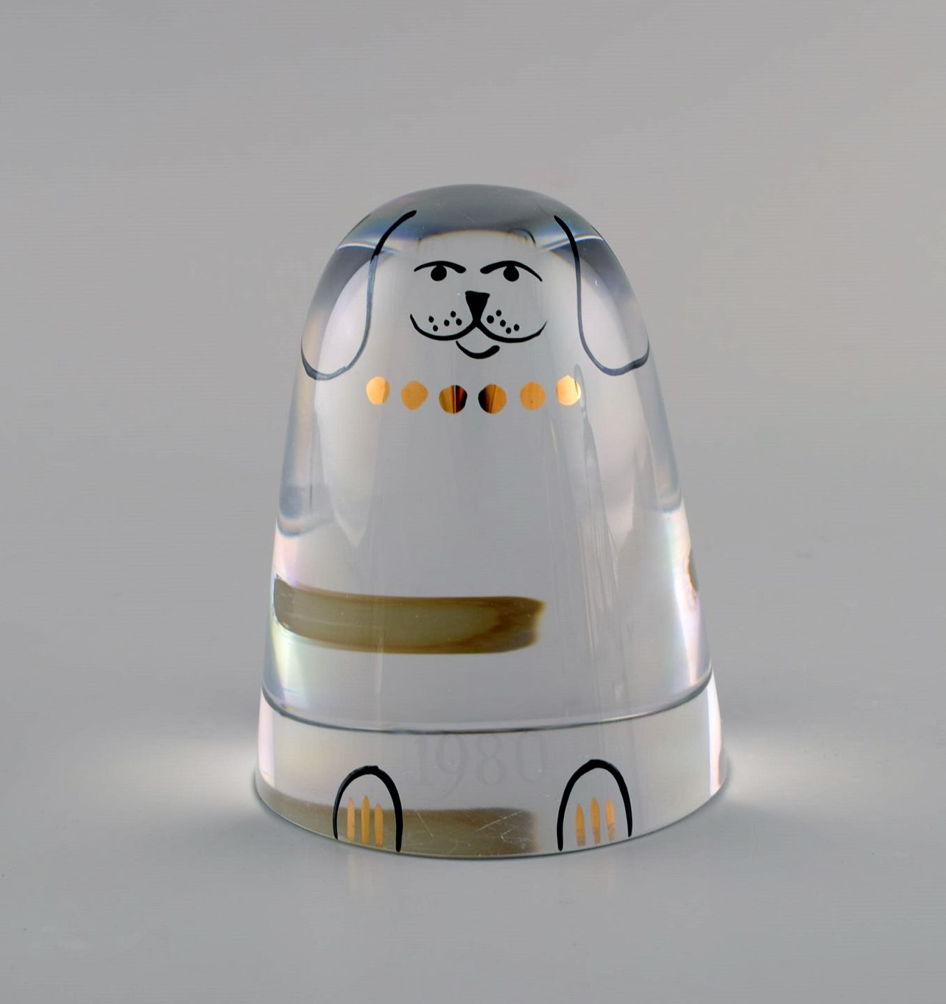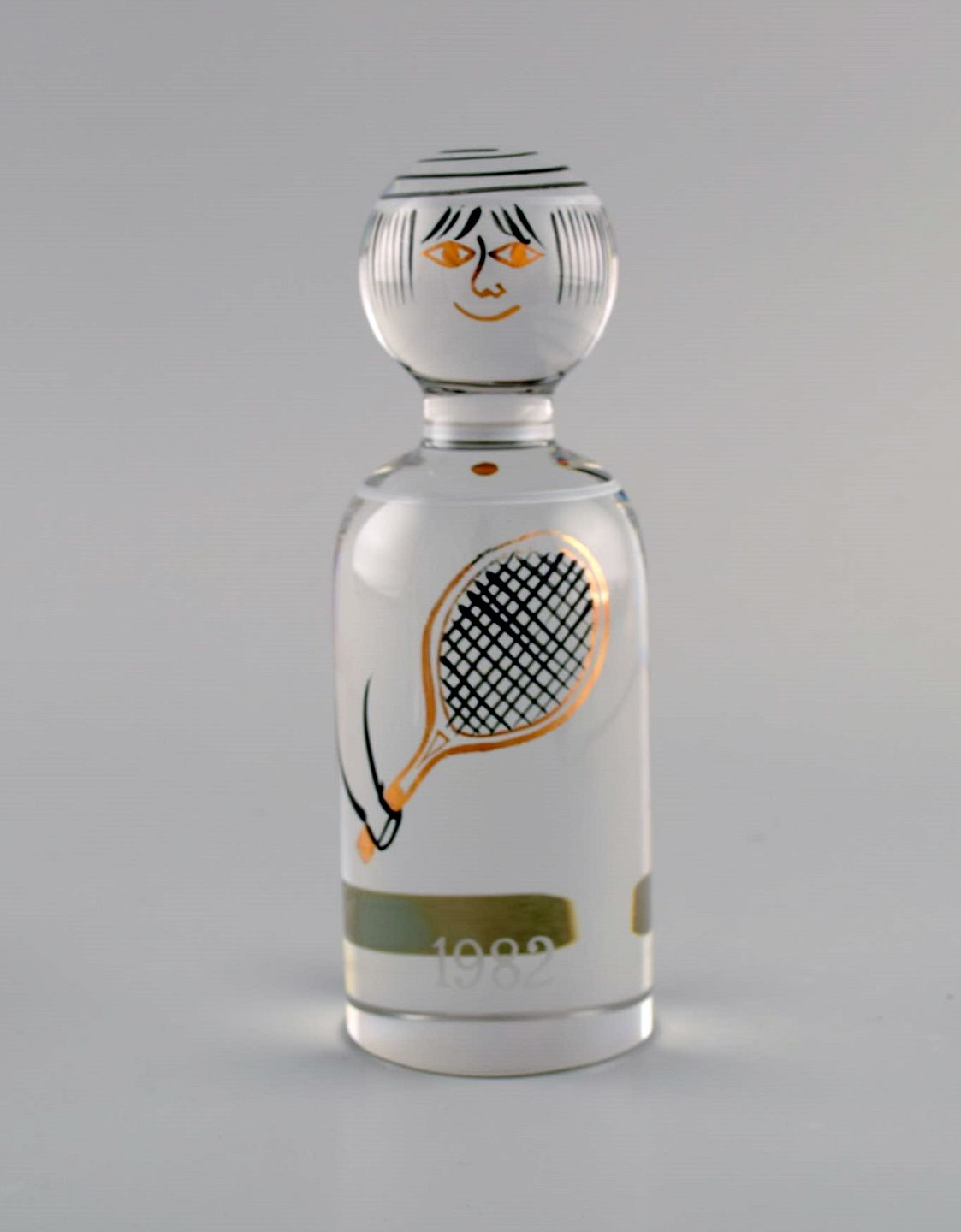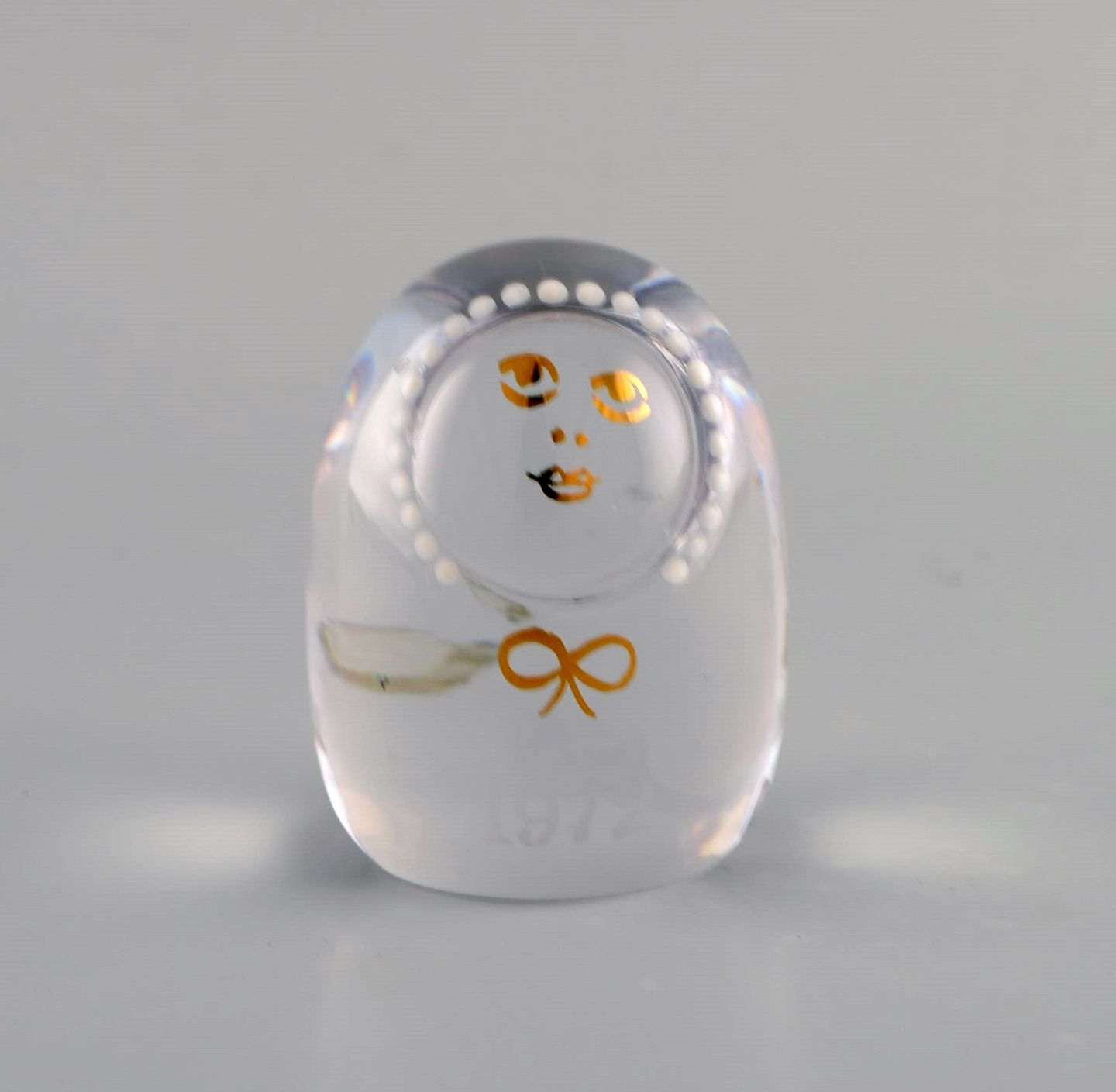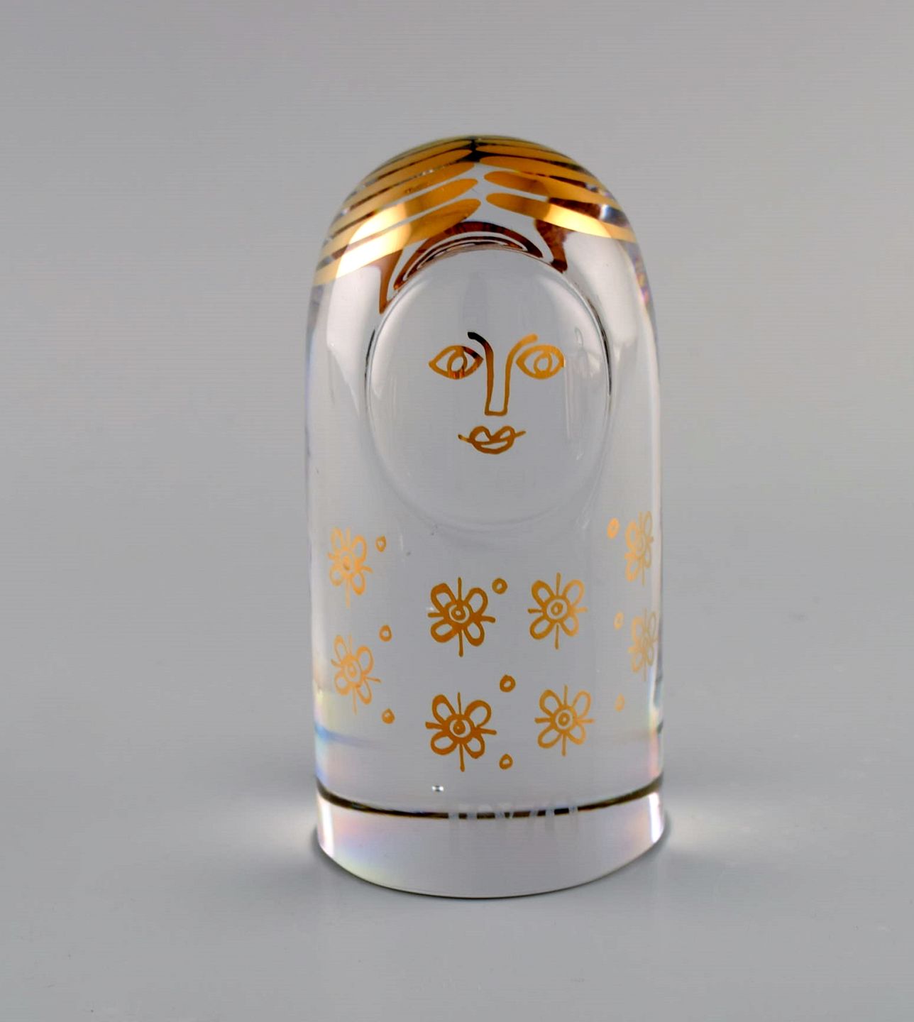 Kosta Boda, Sverige. Fire kunstglas figurer med graveret og håndmalet dekoration. "Familien". 1970'erne. Største måler: 13 x 4,5 cm. Mærket med årstal. I perfekt stand.