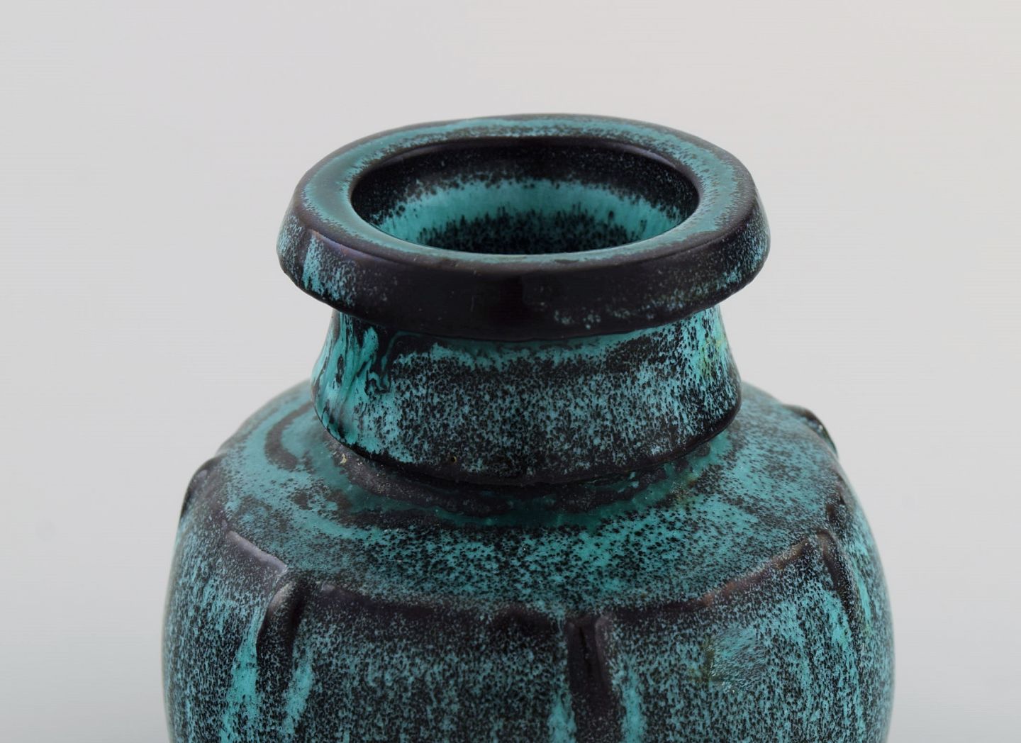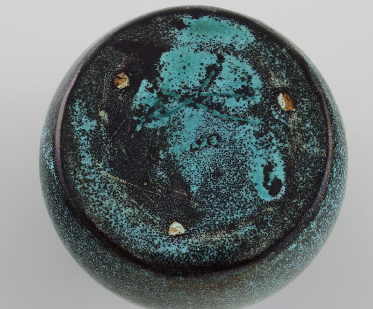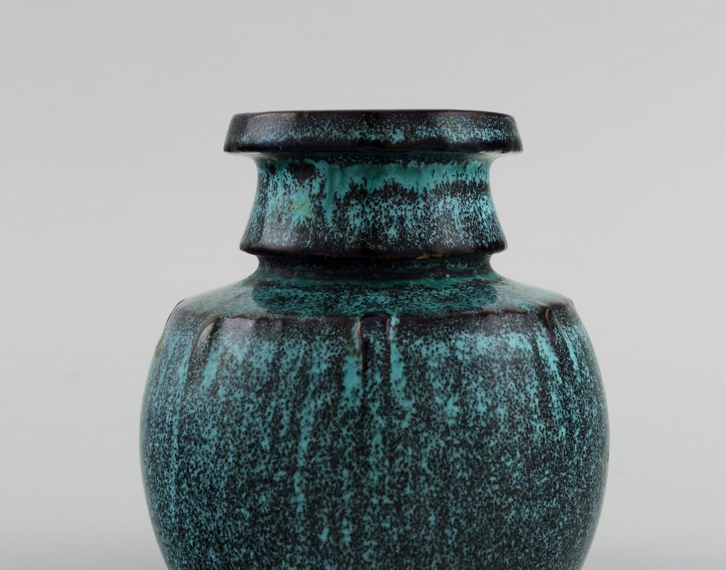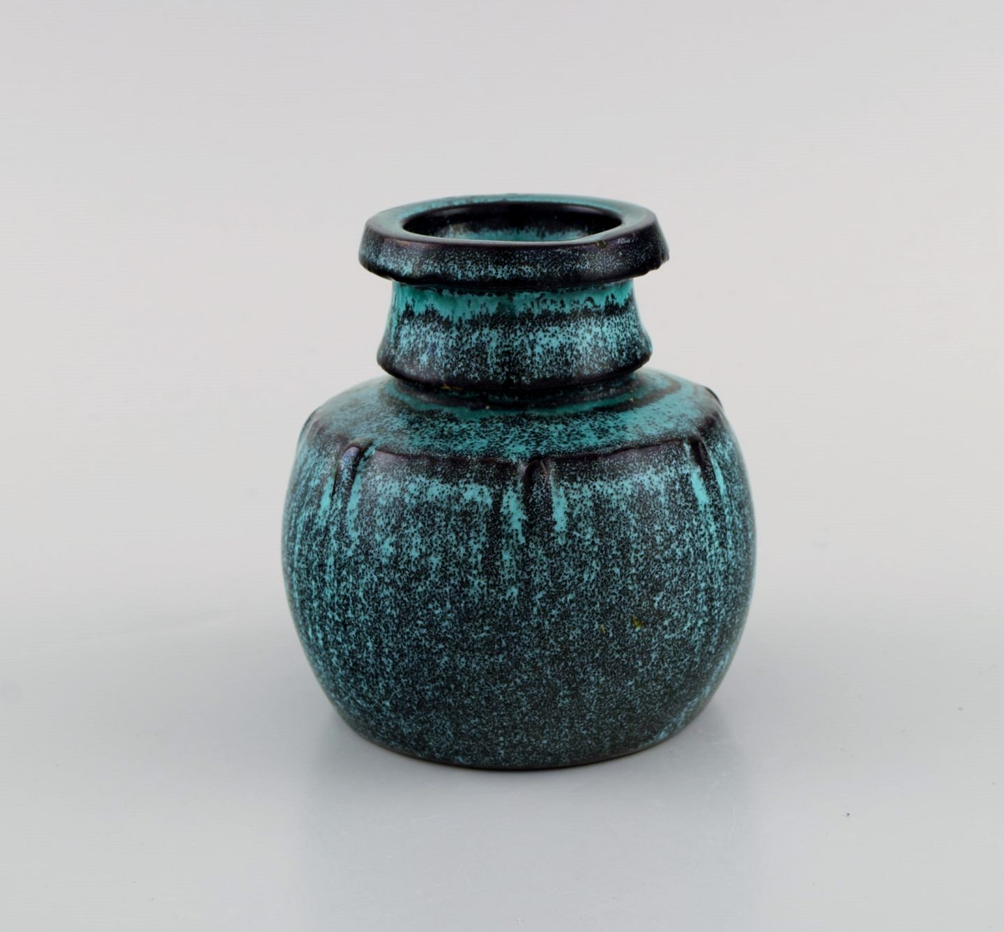 Svend Hammershøi for Kähler, HAK. Vase i glaseret stentøj. Smuk sortgrøn dobbeltglasur. 1930/40'erne. Måler: 10 x 9,5 cm. Signeret. I flot stand.