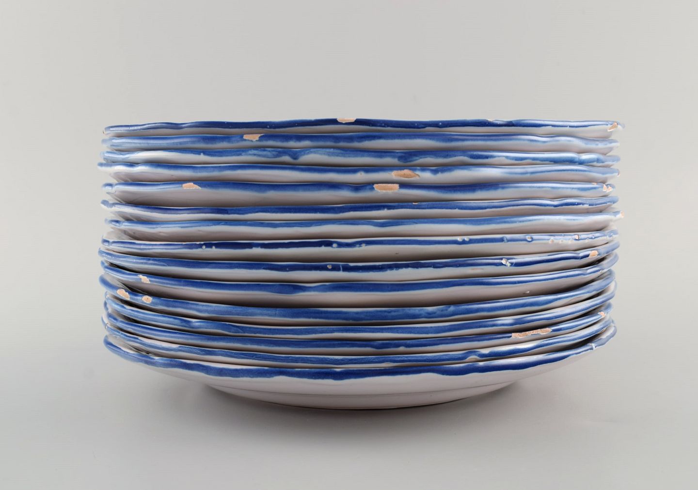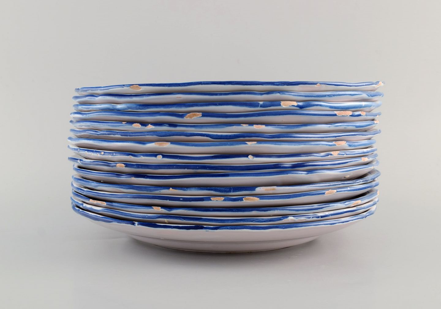 Emile Gallé for St. Clement, Nancy. 15 antikke tallerkener i håndmalet fajance. 1870/80'erne.
