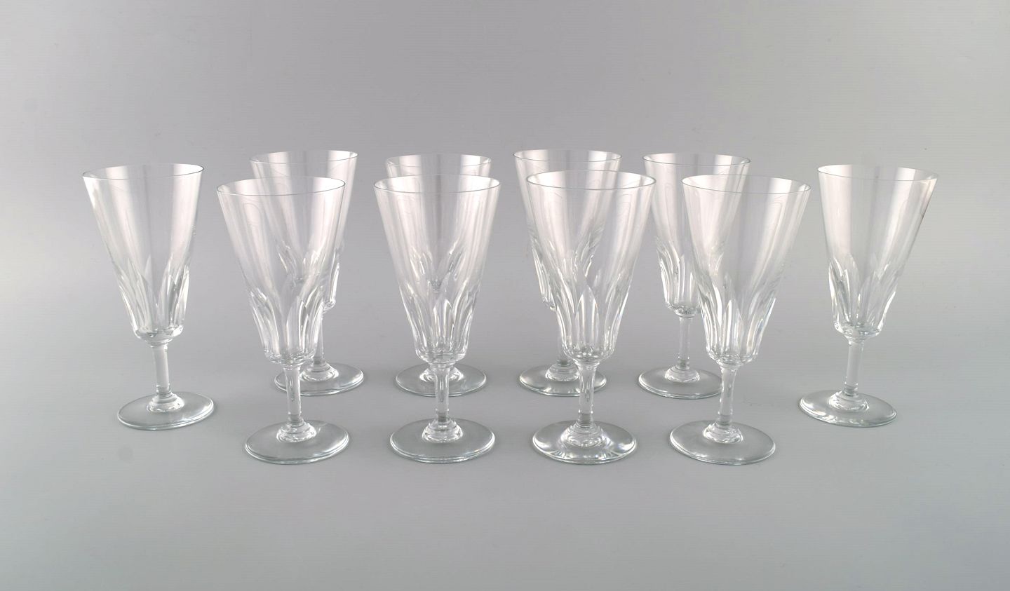 Baccarat, Frankrig. 10 art deco champagnefløjter i klart mundblæst krystalglas. 1930'erne.