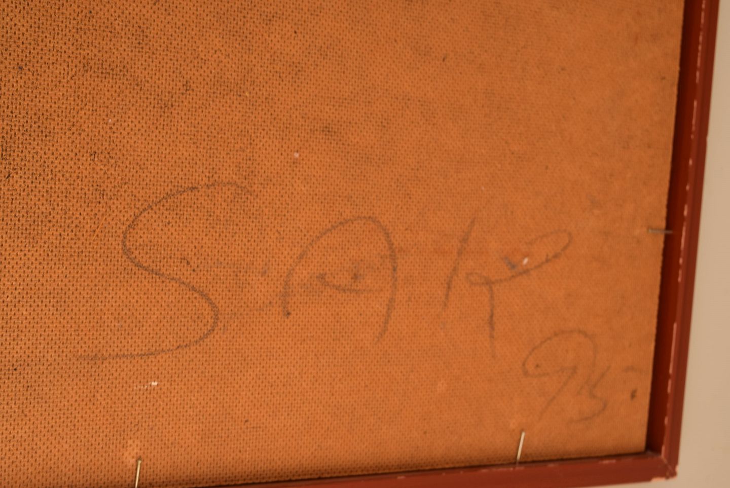 Svend Aage Krogstrup, dansk kunstner. Akryl på plade. Abstrakt komposition. Dateret 1995. Pladen måler: 80 x 60 cm. Rammen måler: 2 cm. I flot stand. Signeret og dateret.
