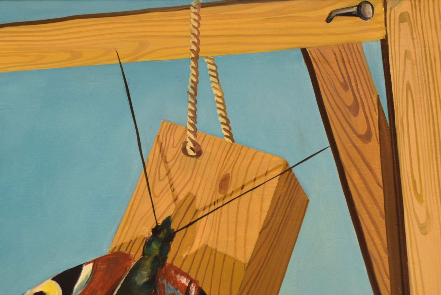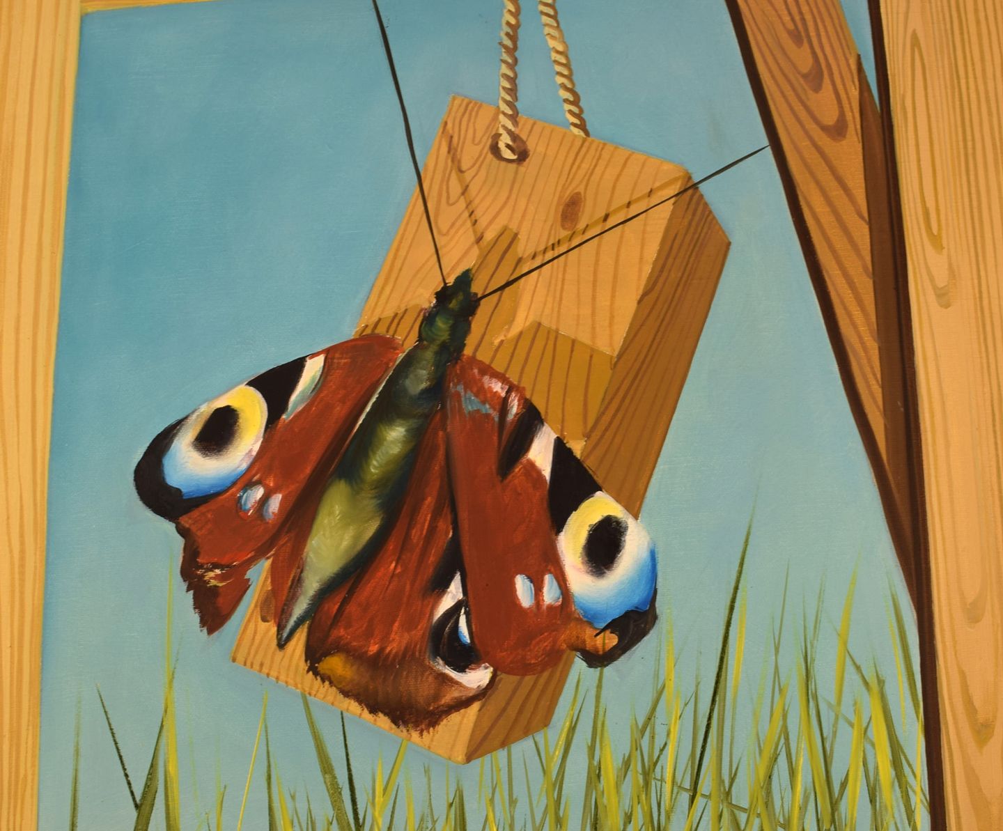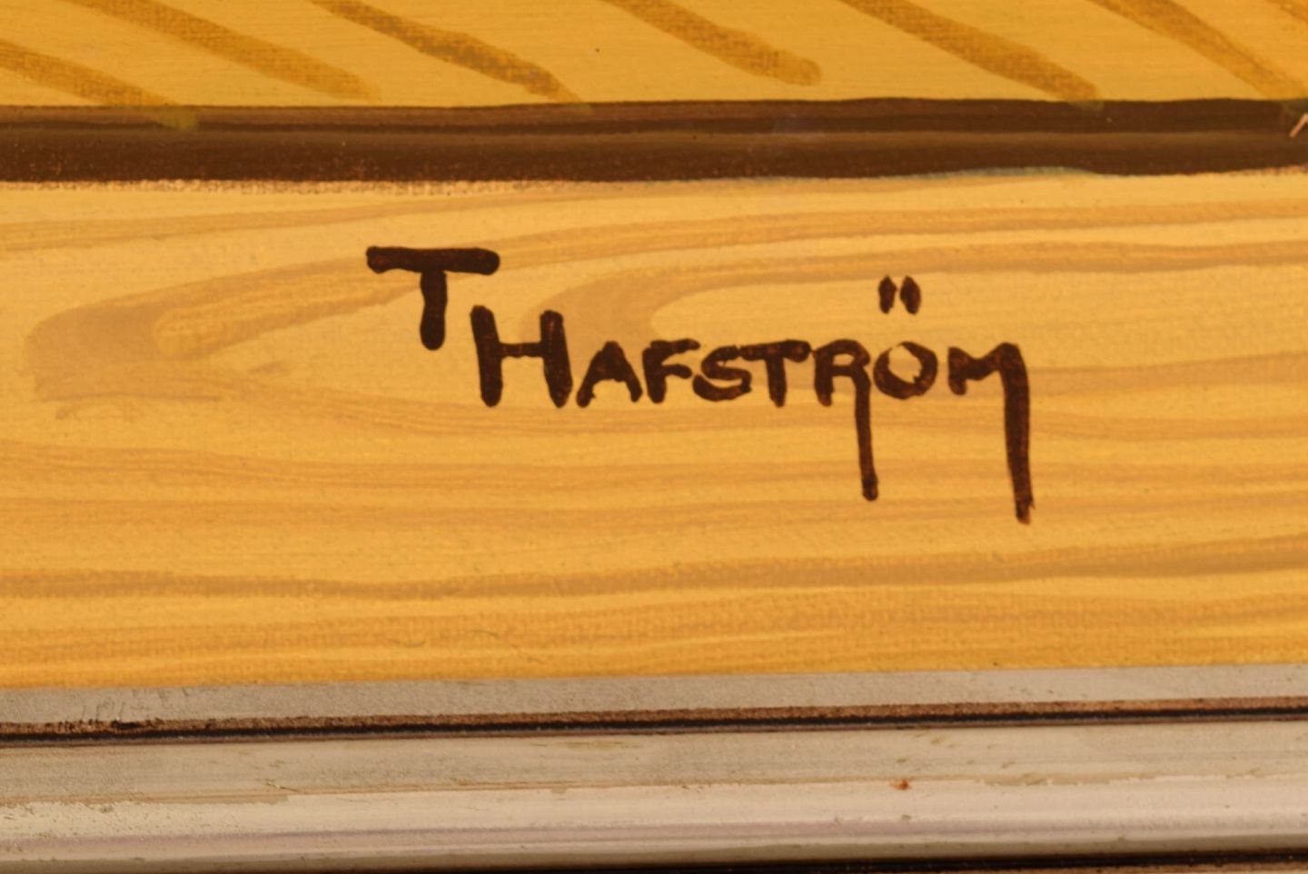 Thomas Hafström (b. 1954), Swedish artist. Oil on canvas. Butterfly on woodwork. Late 20th century. The canvas measures: 64 x 53 cm. The frame measures: 7 cm. In excellent condition. Signed.
