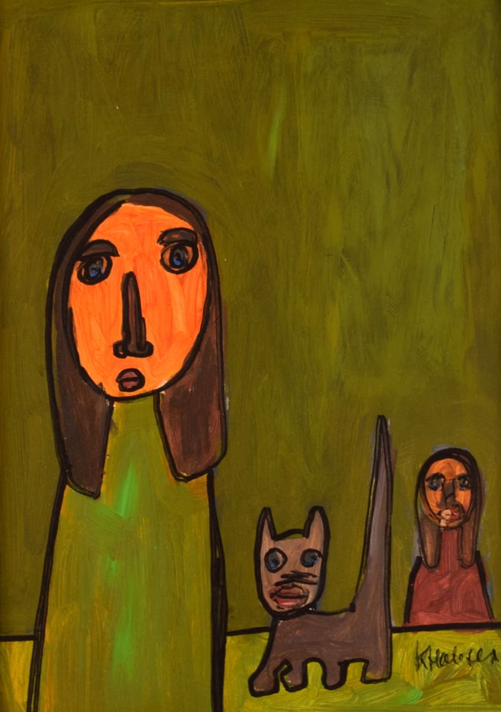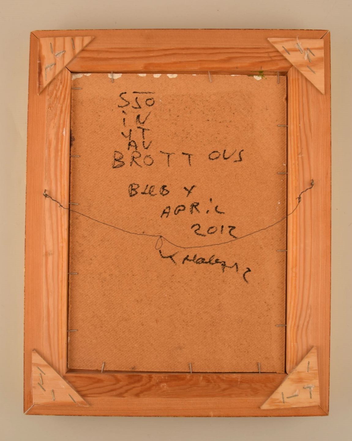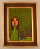 Kjell Hobjer (b. 1951), Swedish artist. Oil on board. Naivistic scene. Dated 2012.