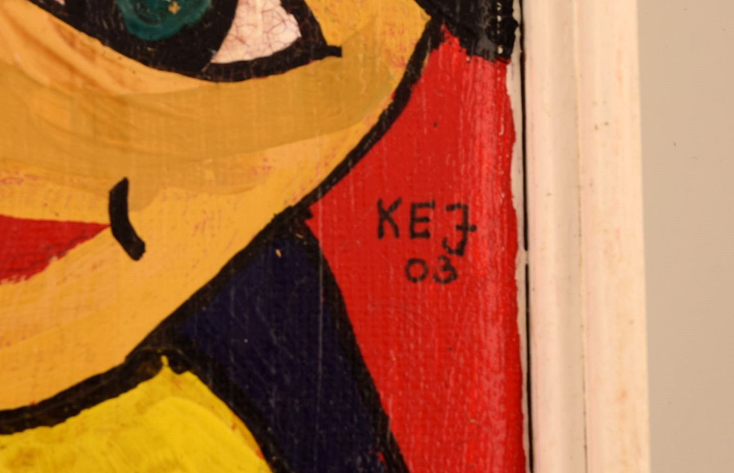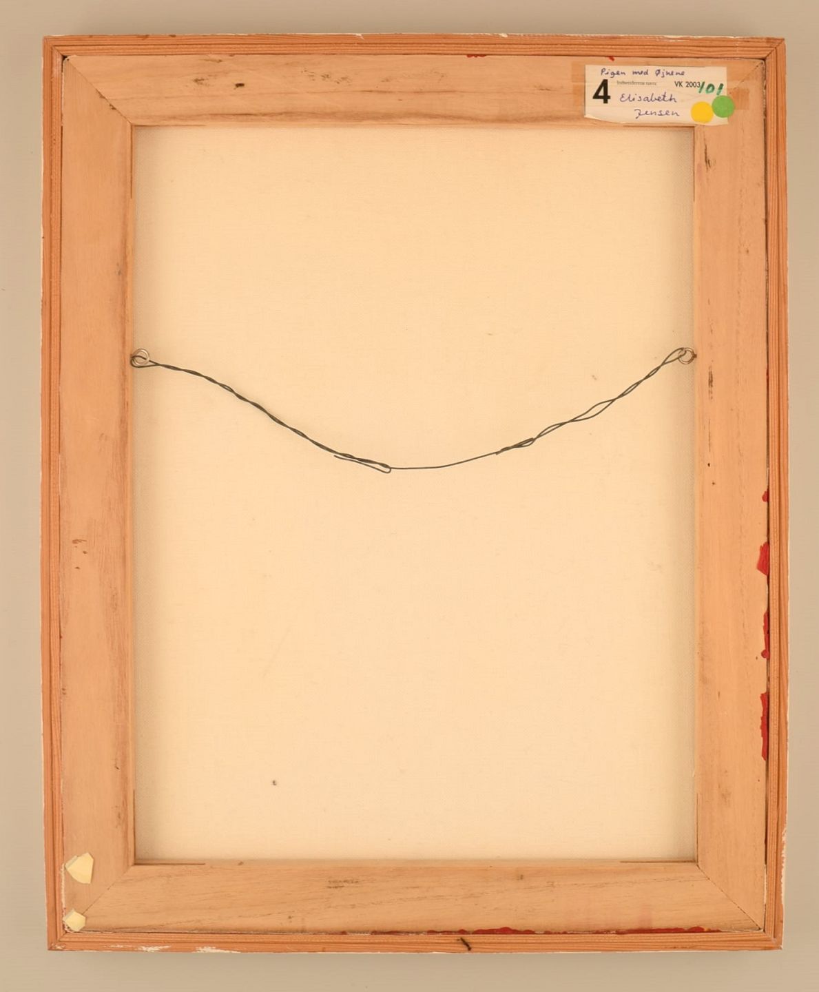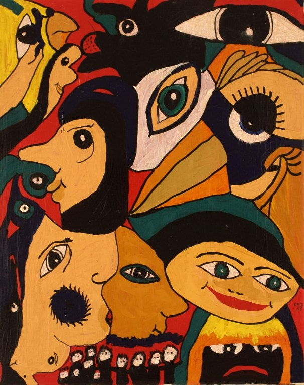 Elisabeth Jensen. Danish artist. Acrylic on canvas. "The girl with the eyes". Figure composition. Dated 2003.