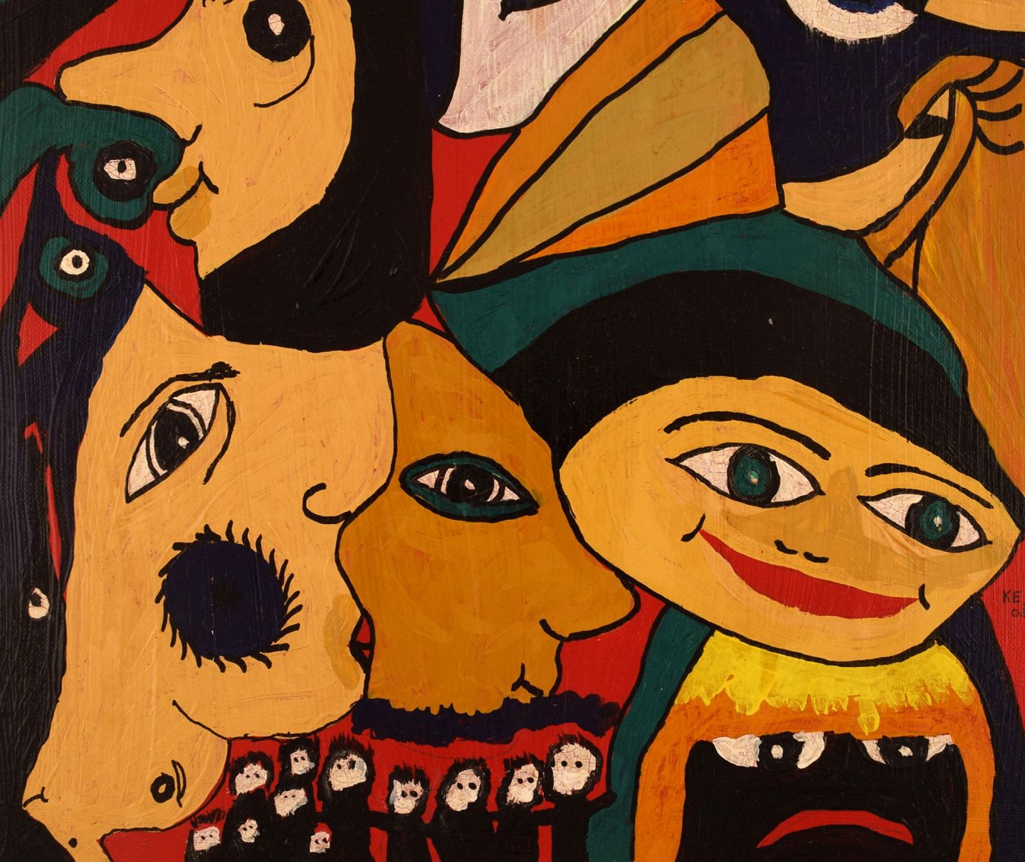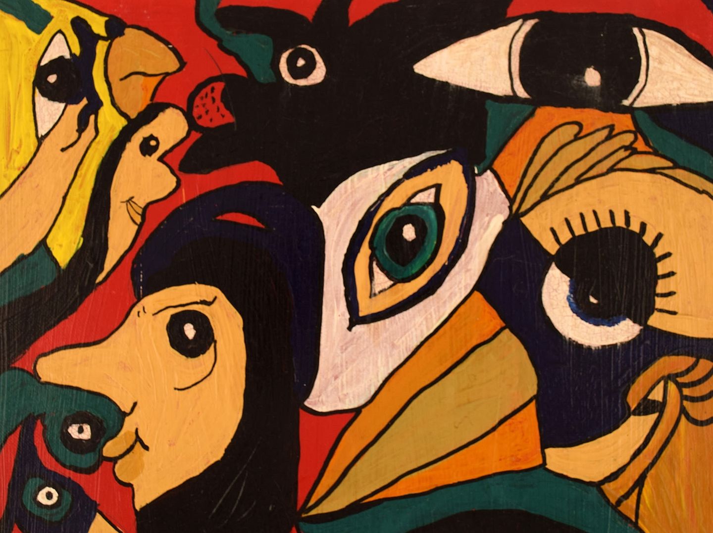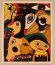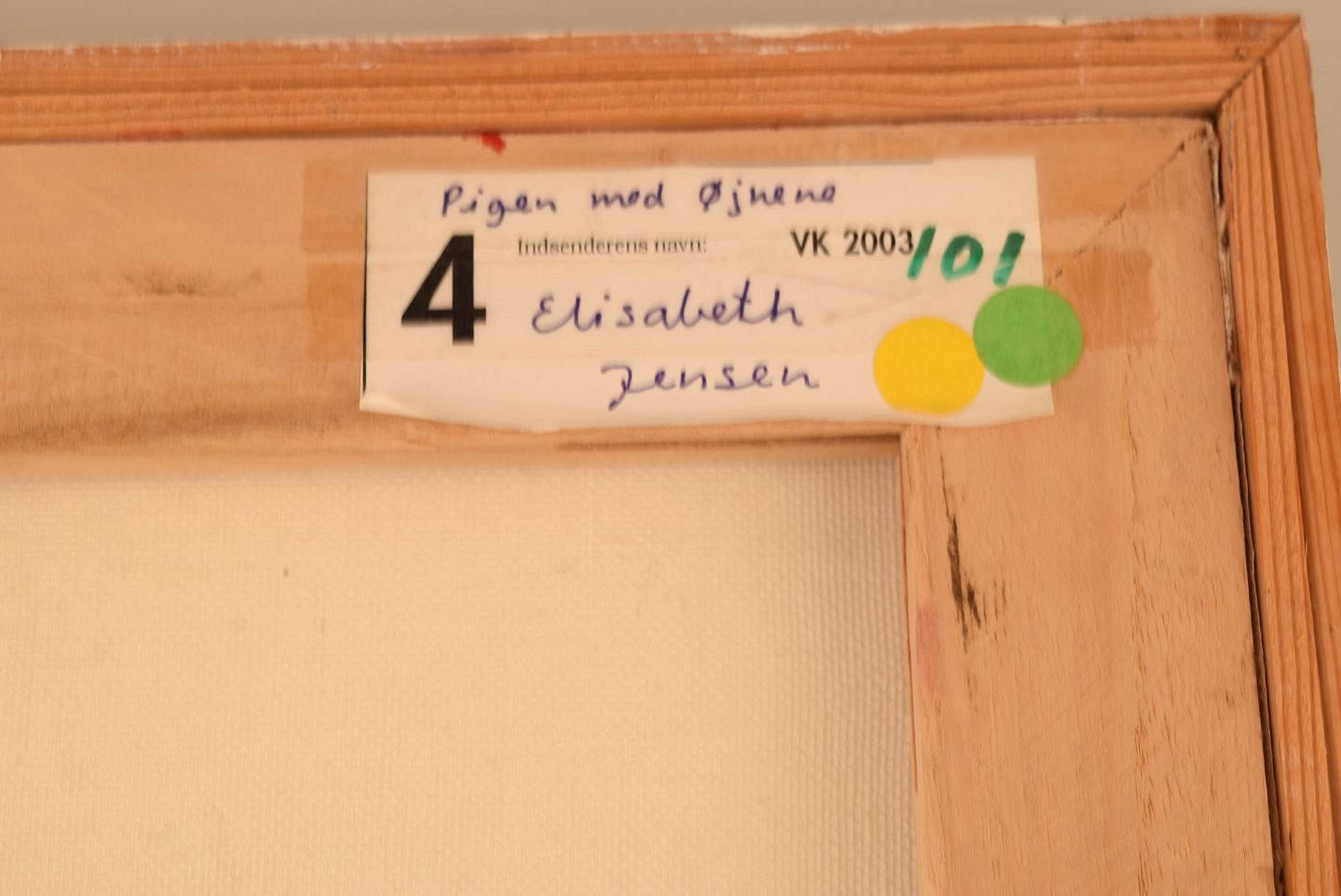 Elisabeth Jensen. Danish artist. Acrylic on canvas. "The girl with the eyes". Figure composition. Dated 2003.