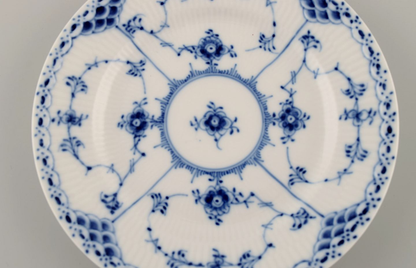 Royal Copenhagen Musselmalet Halvblonde tallerken. Modelnummer 1/575. Diameter: 16 cm. I flot stand. Stemplet. 2. Sortering.