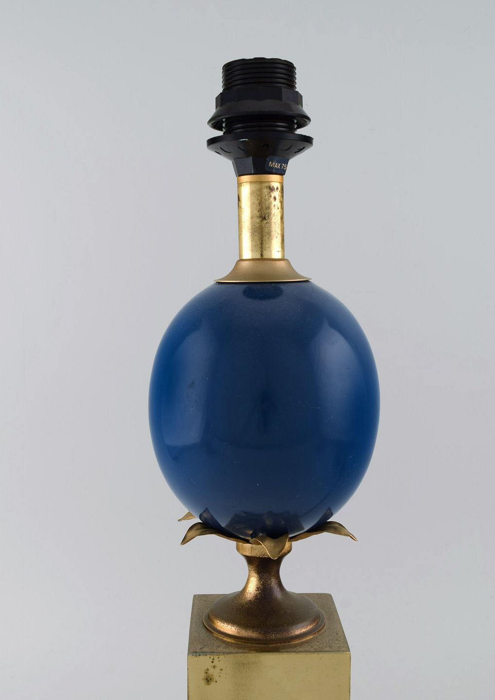 Le Dauphin, Frankrig. Bordlampe med fod og blade i messing. 1960/70'erne. Måler: 38 x 12,5 cm (eks fatning). I flot stand med brugspræg.