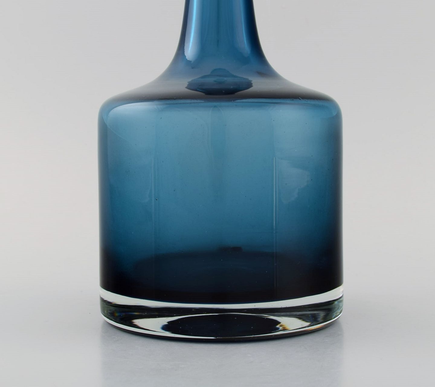 Åseda Glasbruk, Sverige. Smalhalset vase i blåt mundblæst kunstglas. 1970'erne.
