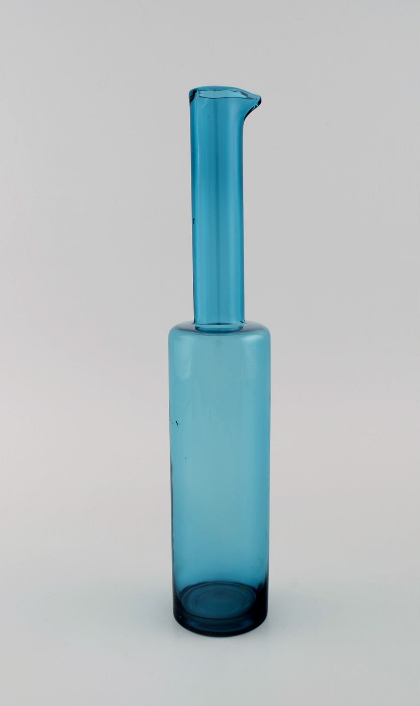 Nanny Still (1926-2009) for Riihimäen Lasi. Vase / flaske i blåt mundblæst kunstglas. Finsk design, 1960'erne.