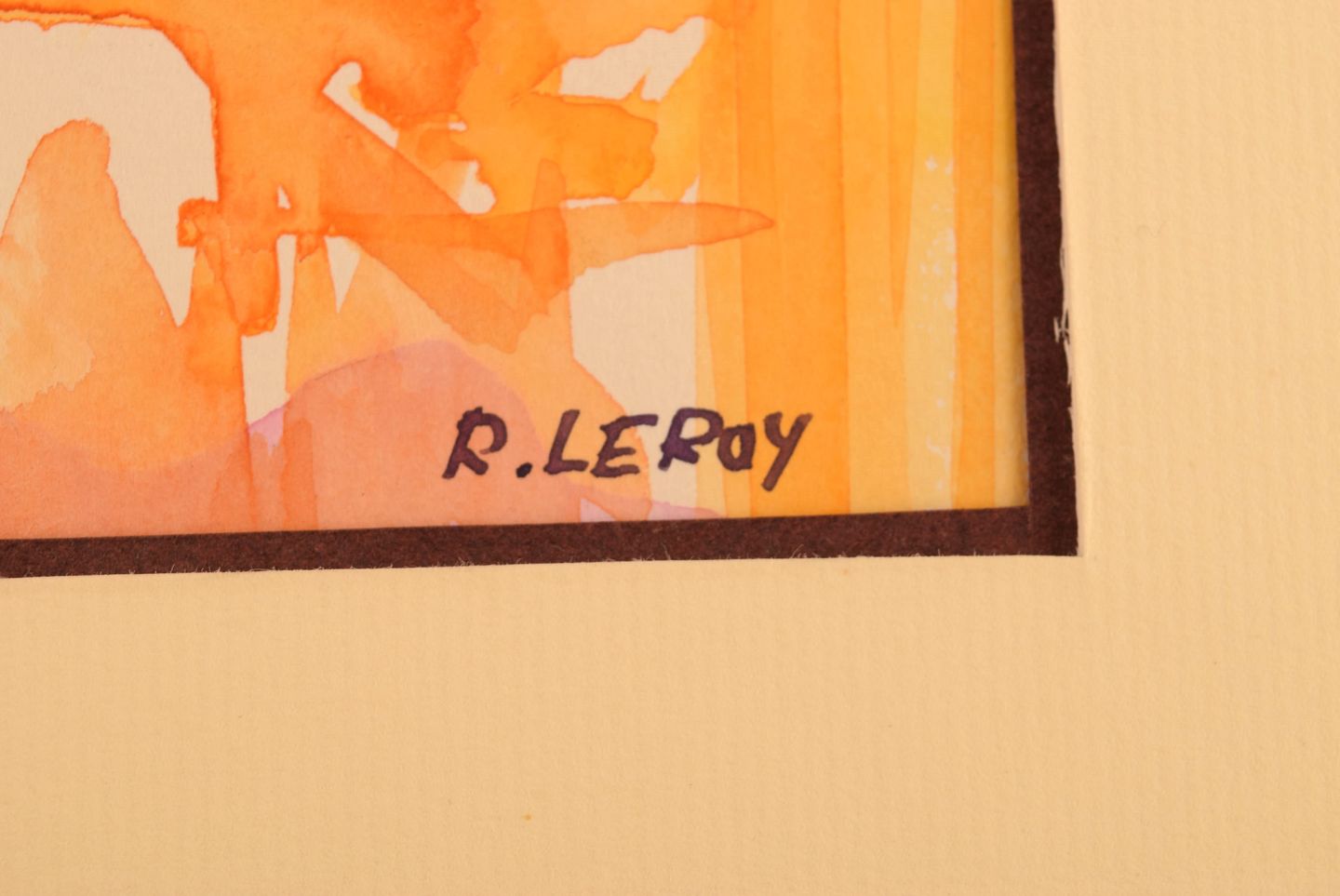 René Leroy (f. 1931), fransk kunstner. Akvarel på papir. 1980'erne. Lysmål: 15 x 10 cm. Totalmål: 24 x 18 cm. I flot stand. Signeret.