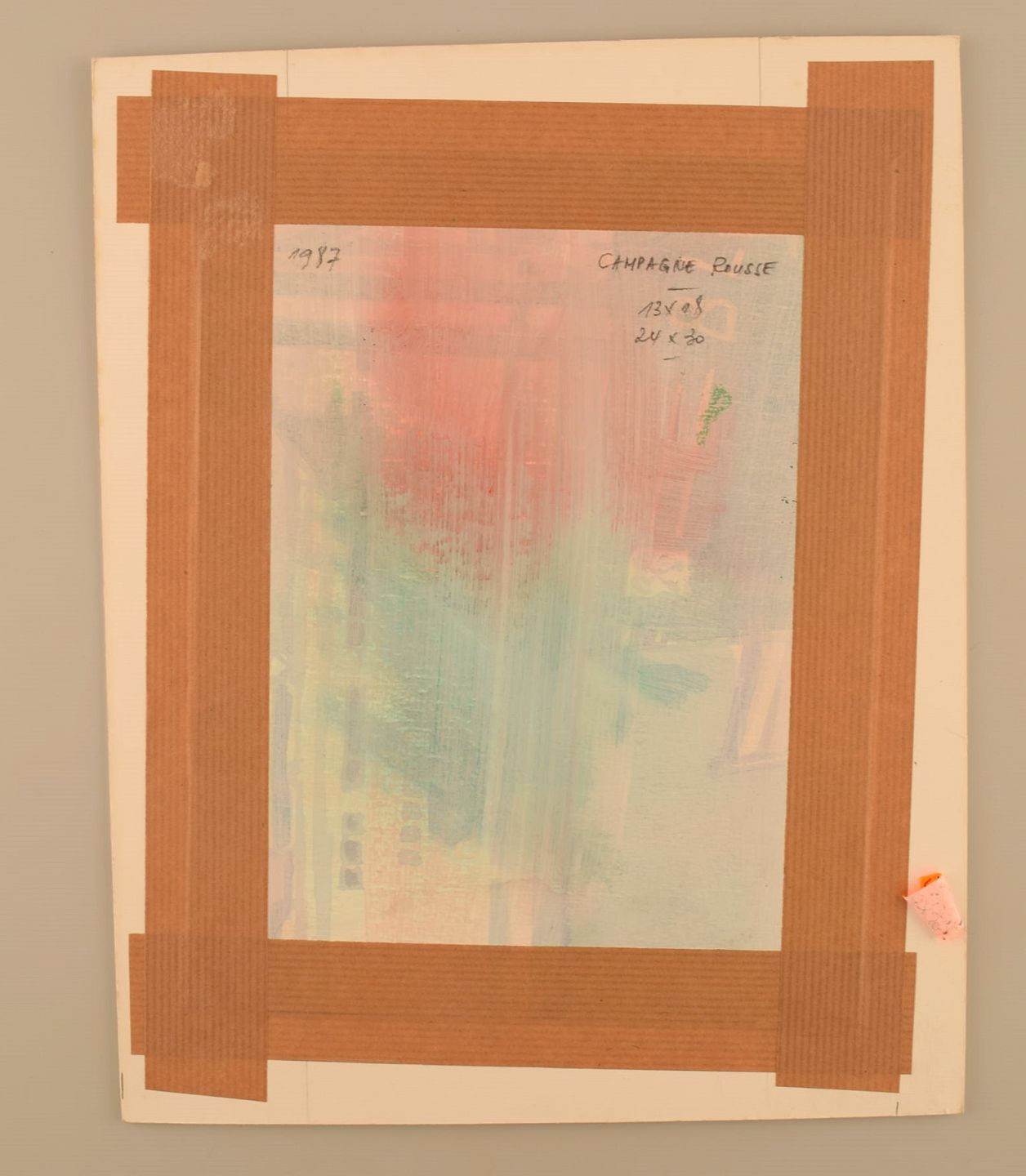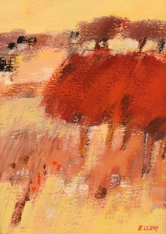 René Leroy (f. 1931), fransk kunstner. Pastel på papir. "Campagne Rousse". Dateret 1987. Lysmål: 17,5 x 12 cm. Totalmål: 30 x 24 cm. I flot stand. Signeret og dateret.