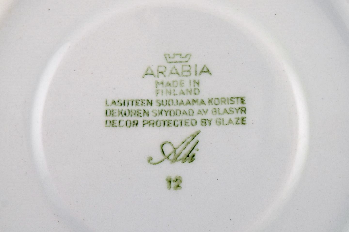 Raija Uosikkinen for Arabia. 9 Ali kaffekopper med underkopper i porcelæn med blå blomsterdekoration. 1960'erne.