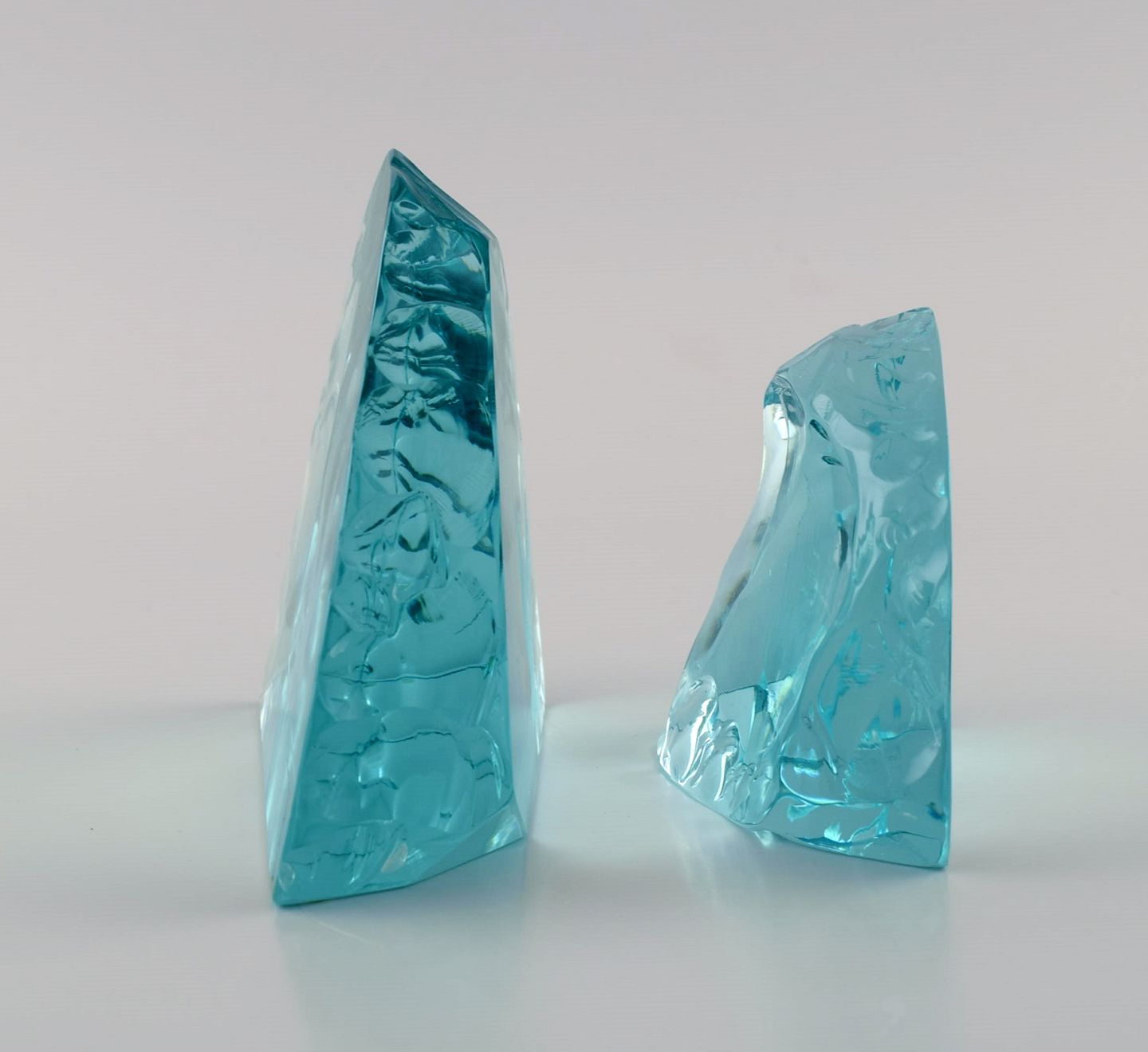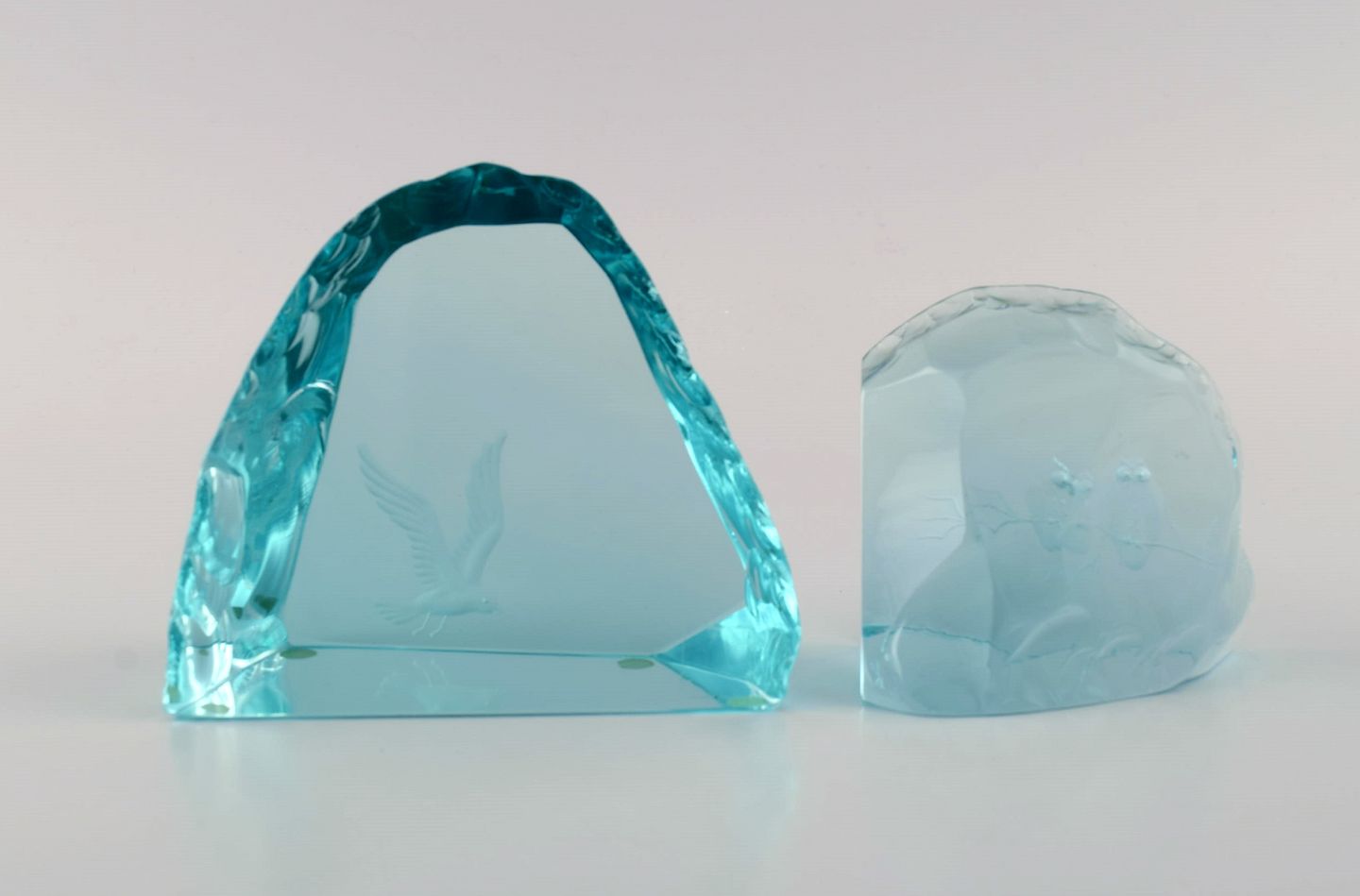 Vicke Lindstrand (1904-1983) for Kosta Boda. To mundblæste glasblokke dekoreret med rovfugl og ugler. 1960'erne. Største måler: 11,5 x 10 cm. Dybde: 4,5 cm. I flot stand. Signeret.