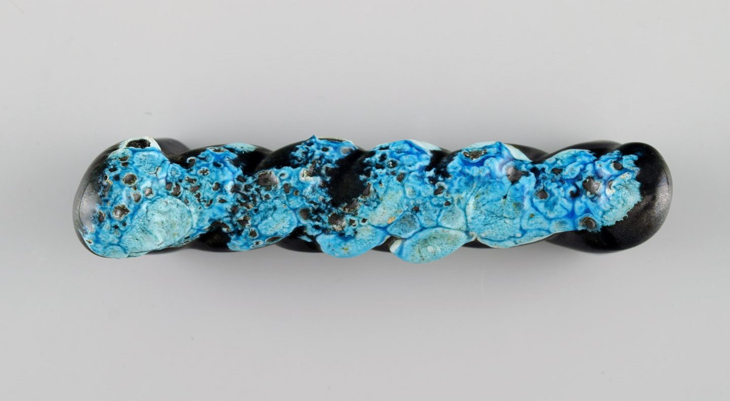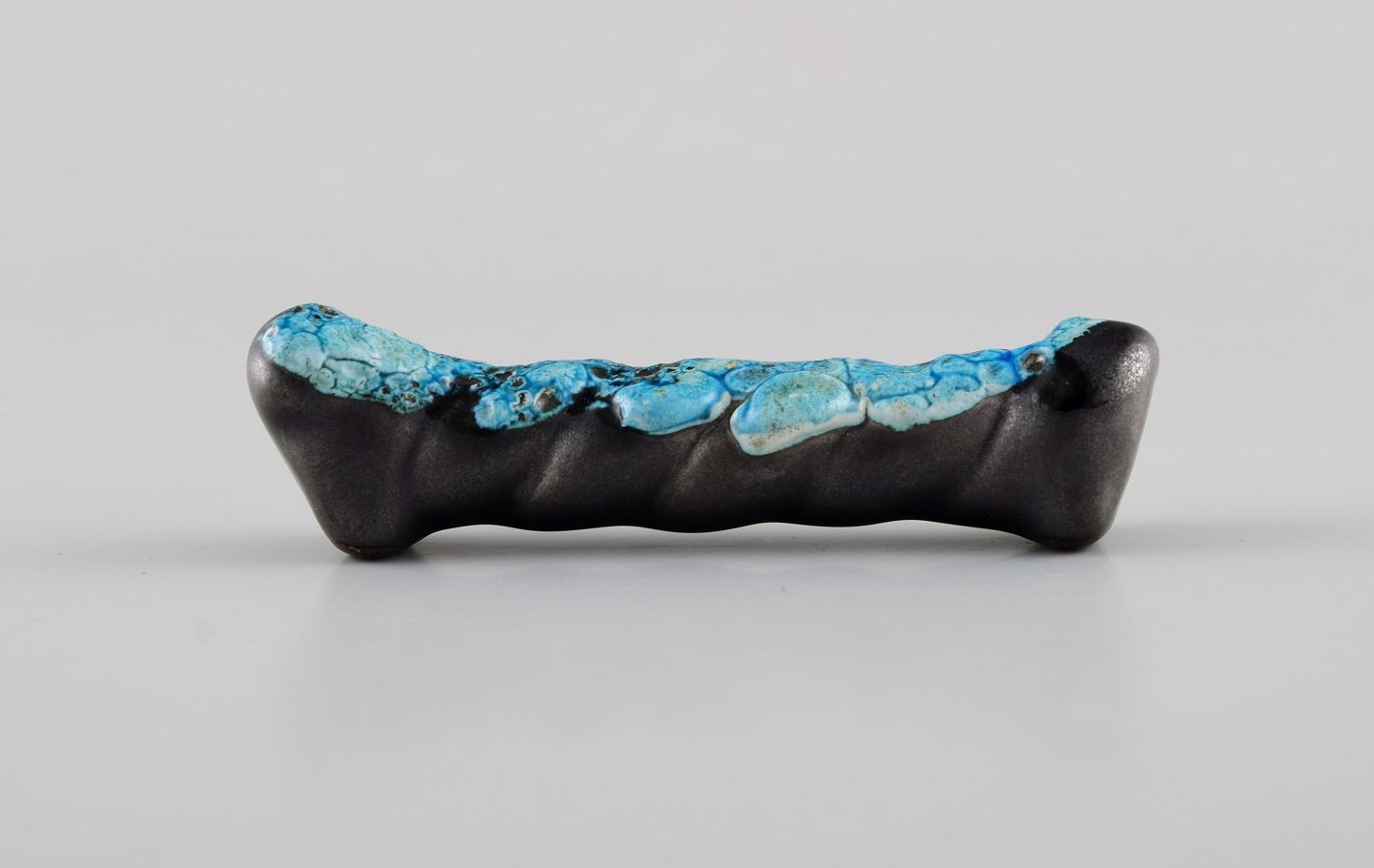 Fransk keramiker. Otte knivblokke i glaseret stentøj. Smuk glasur i azurblå nuancer. Unika keramik af høj kvalitet. Midt 1900-tallet. Måler: 8,5 x 2,5 cm. I flot stand.