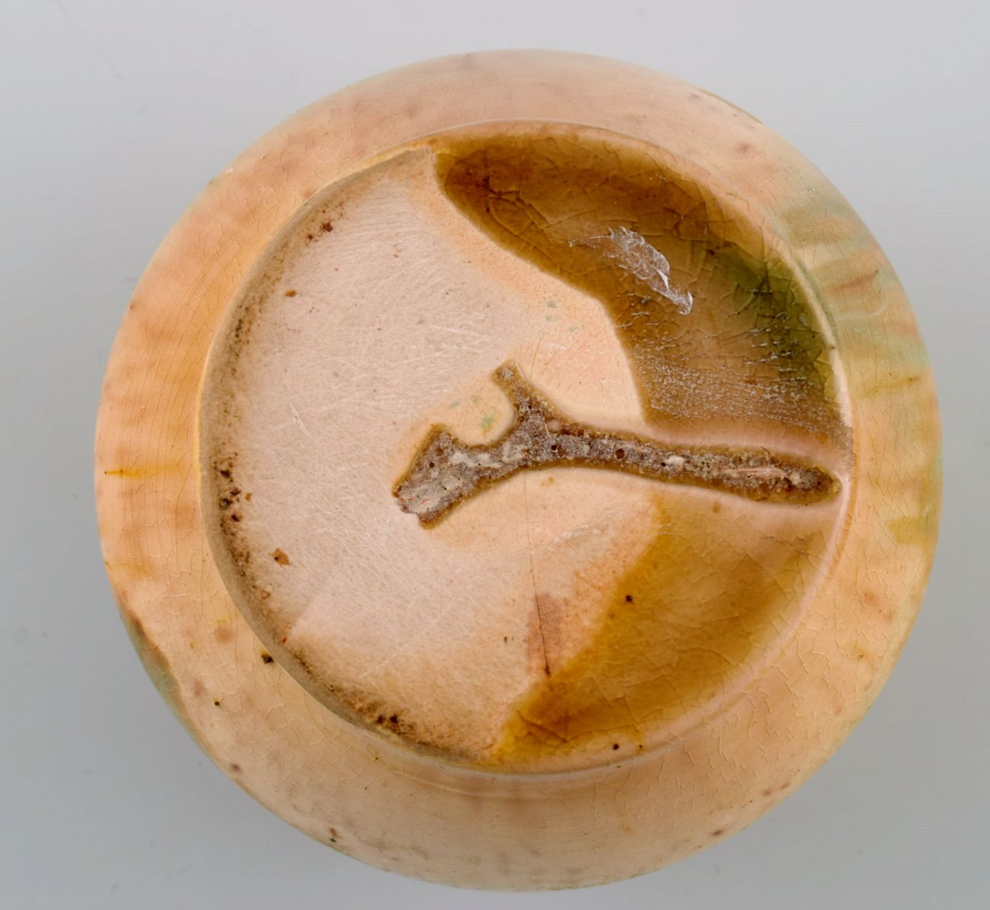 Europæisk studiokeramiker. Unika vase i glaseret keramik. Smuk glasur i sand nuancer. Midt 1900-tallet. Måler: 11 x 7,5 cm. I flot stand.