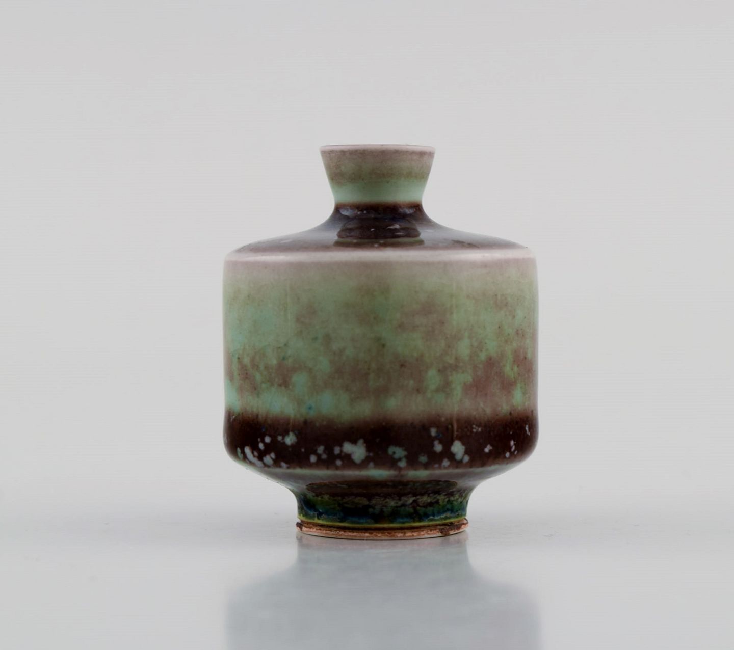 Berndt Friberg (1899-1981) for Gustavsberg Studiohand. Miniature vase i glaseret keramik. Smuk Aniara glasur. 1970'erne.
