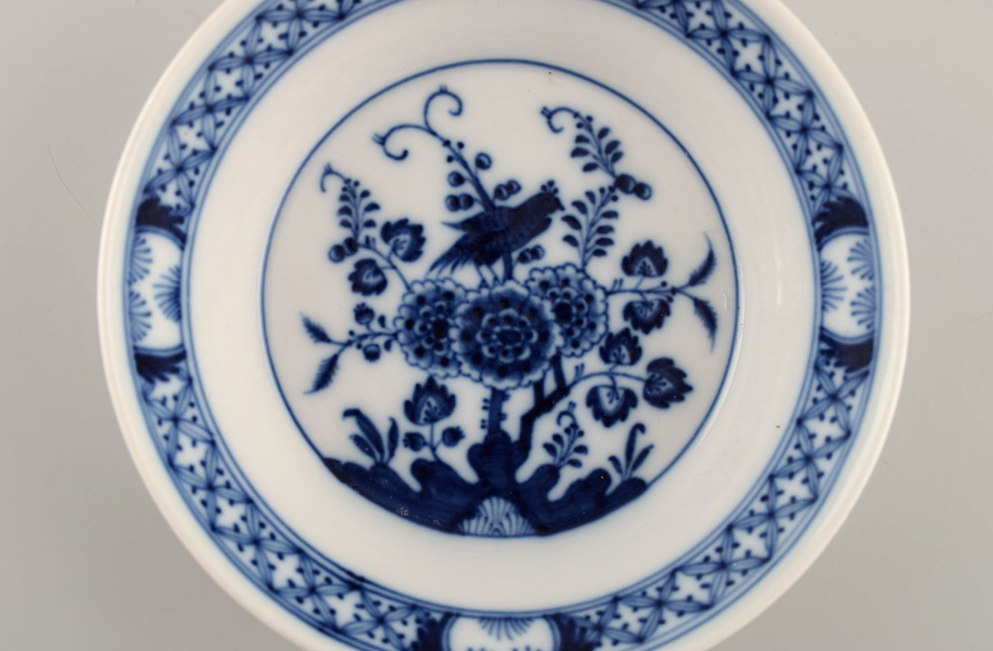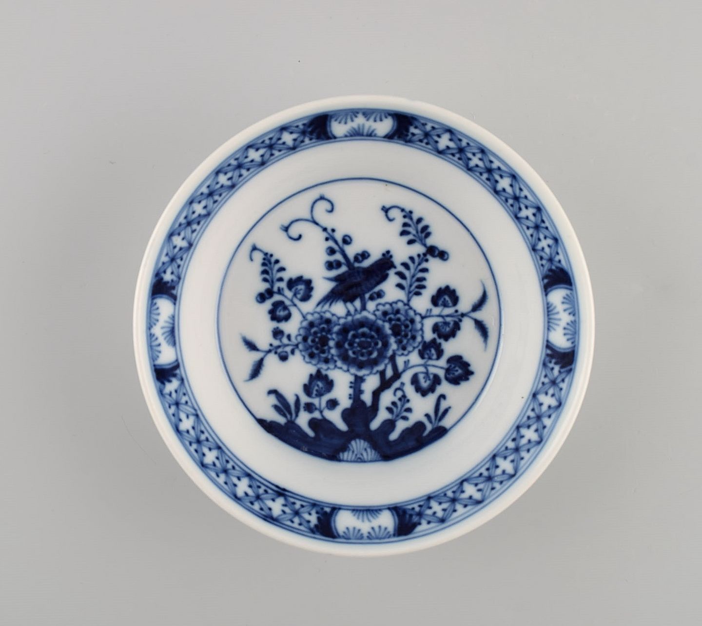Sjælden Meissen skål i håndmalet porcelæn dekoreret med eksotisk fugl i kinesisk stil. Sent 1800-tallet. Måler: 14,5 x 3,7 cm. I flot stand. Signeret. 1. Sortering.