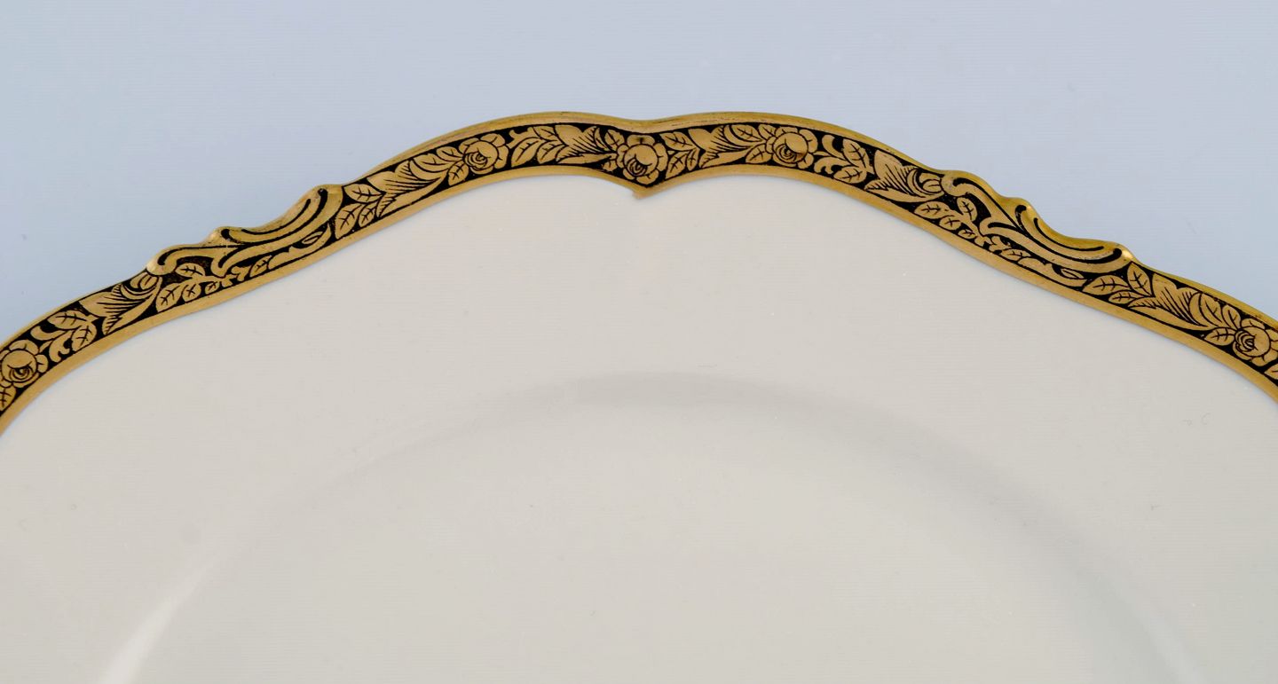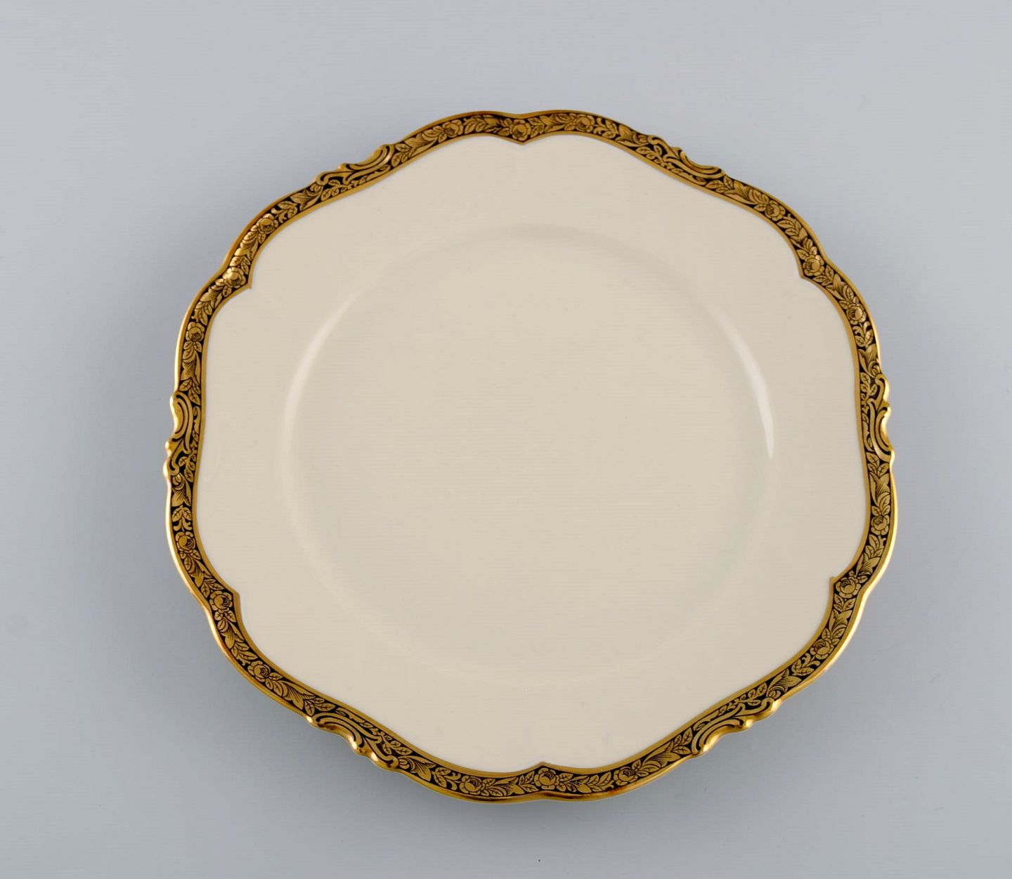 KPM, Berlin. Tolv Royal Ivory frokosttallerkener i cremefarvet porcelæn med gulddekoration. 1920'erne. Diameter: 21 cm. I flot stand. Stemplet.