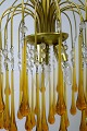 Stor og imponerende Murano lysekrone / loftlampe. Stel i messing med lange dråber i ravfarvet mundblæst kunstglas. Italiensk design, 1960/70'erne.