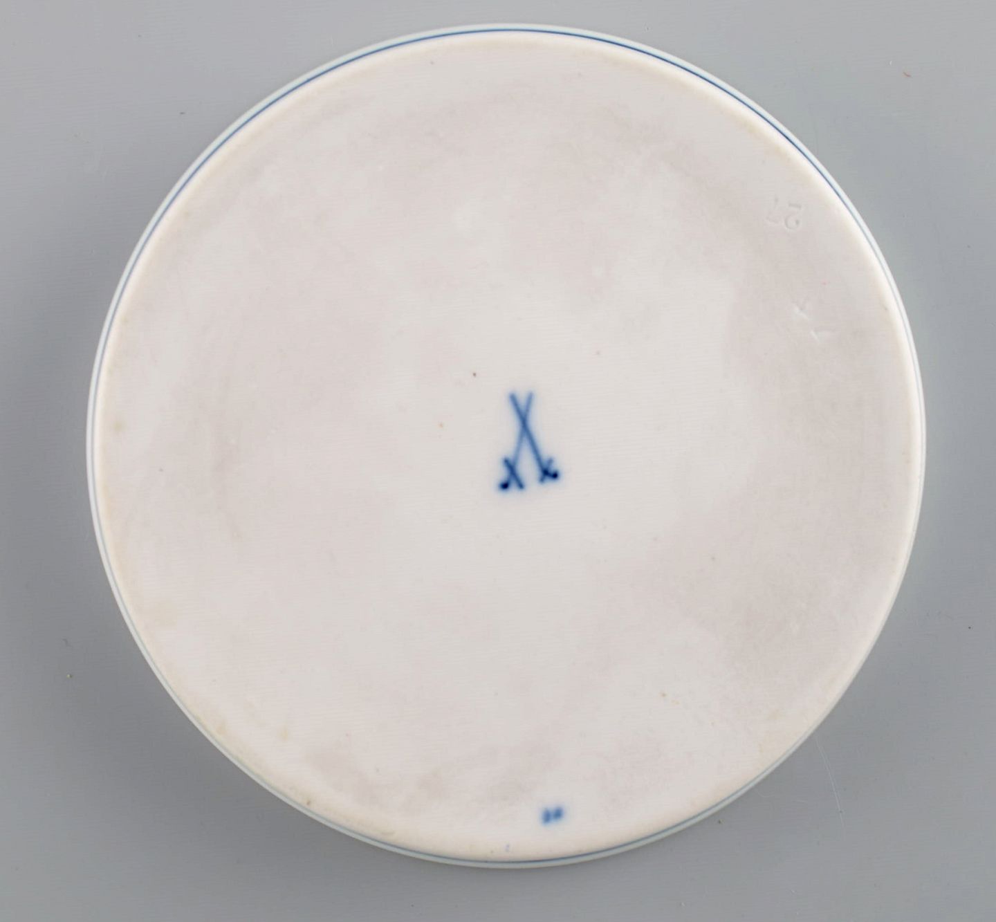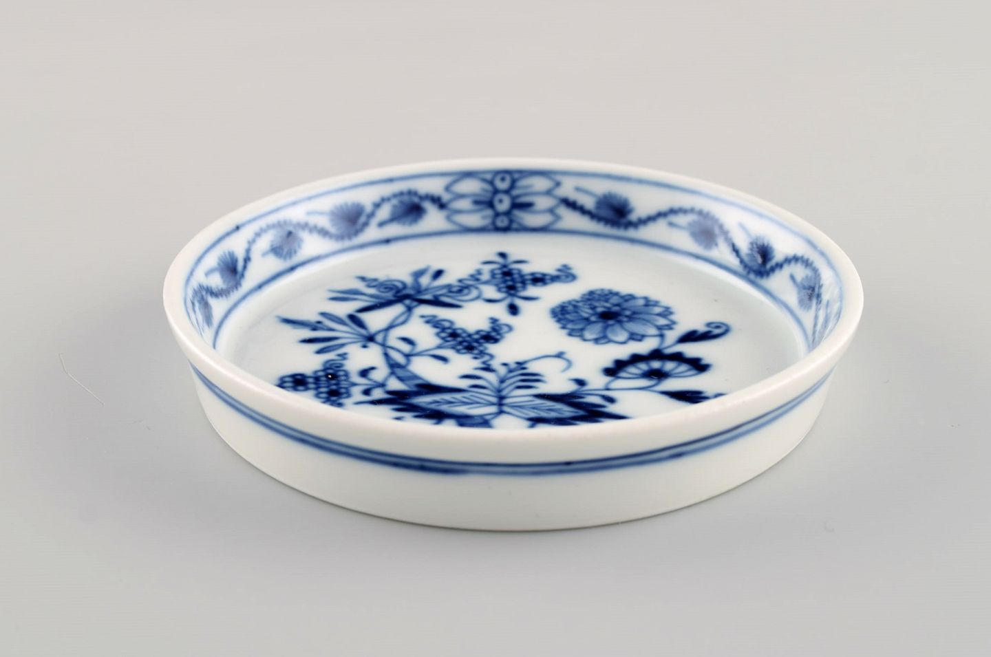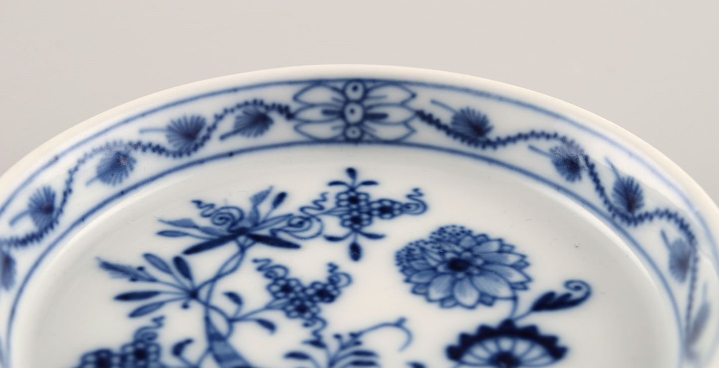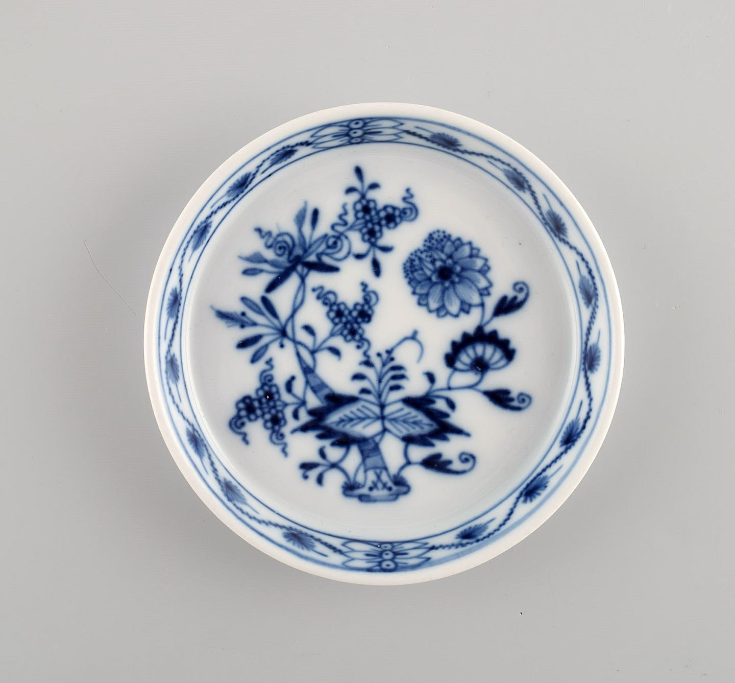 To små Meissen Løgmønstret fade / skåle i håndmalet porcelæn. Ca. 1900. Måler: 10,5 x 2 cm. I flot stand. Stemplet. 1. Sortering.