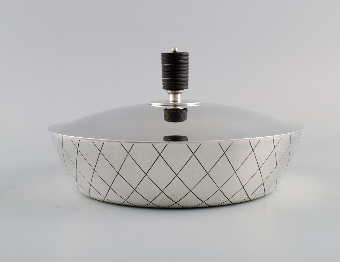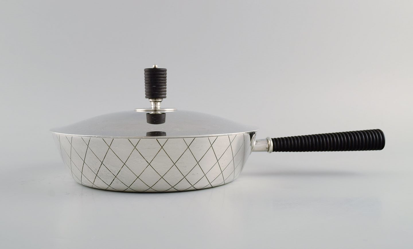 Sigvard Bernadotte for Georg Jensen. Sjælden kasserolle i sterlingsølv med med hank og lågknob i ibenholt. Modelnummer 909C.