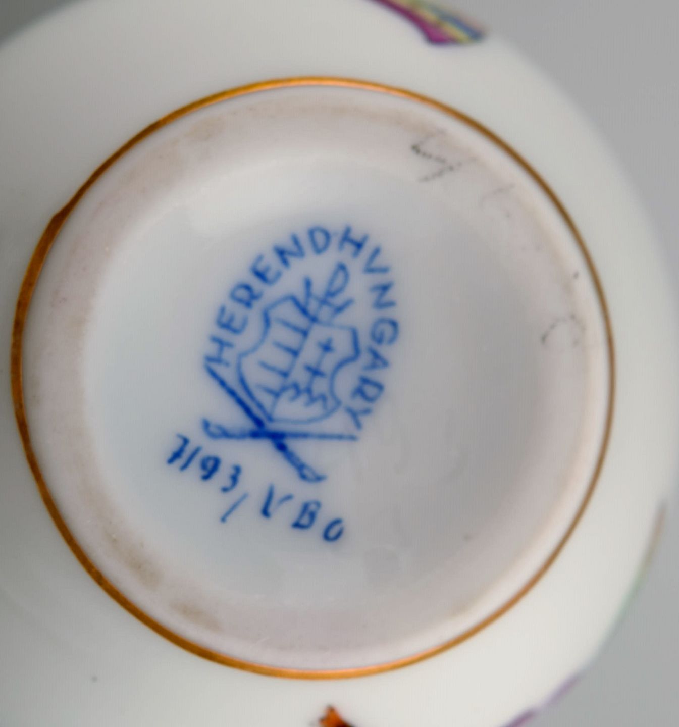 Tre Herend porcelænsvaser med håndmalede blomster og sommerfugle. Midt 1900-tallet. Største måler: 6,7 x 5,5 cm. I flot stand. Stemplet.