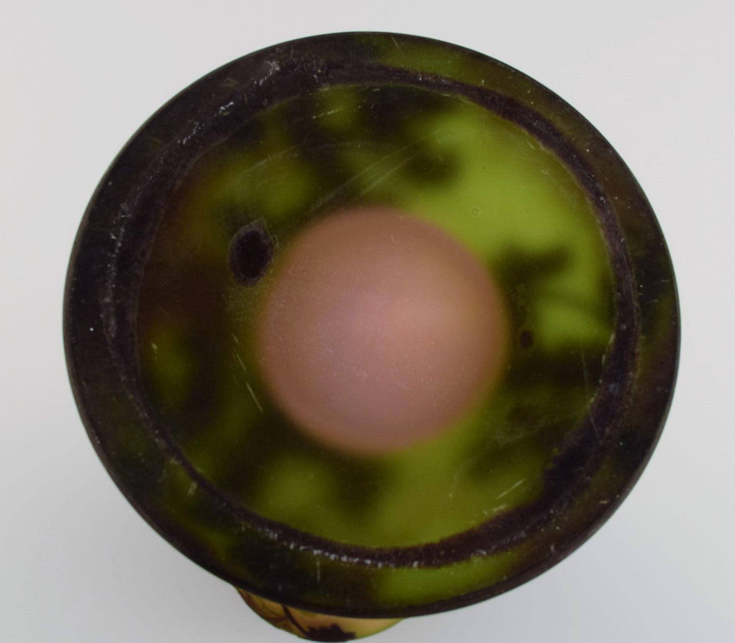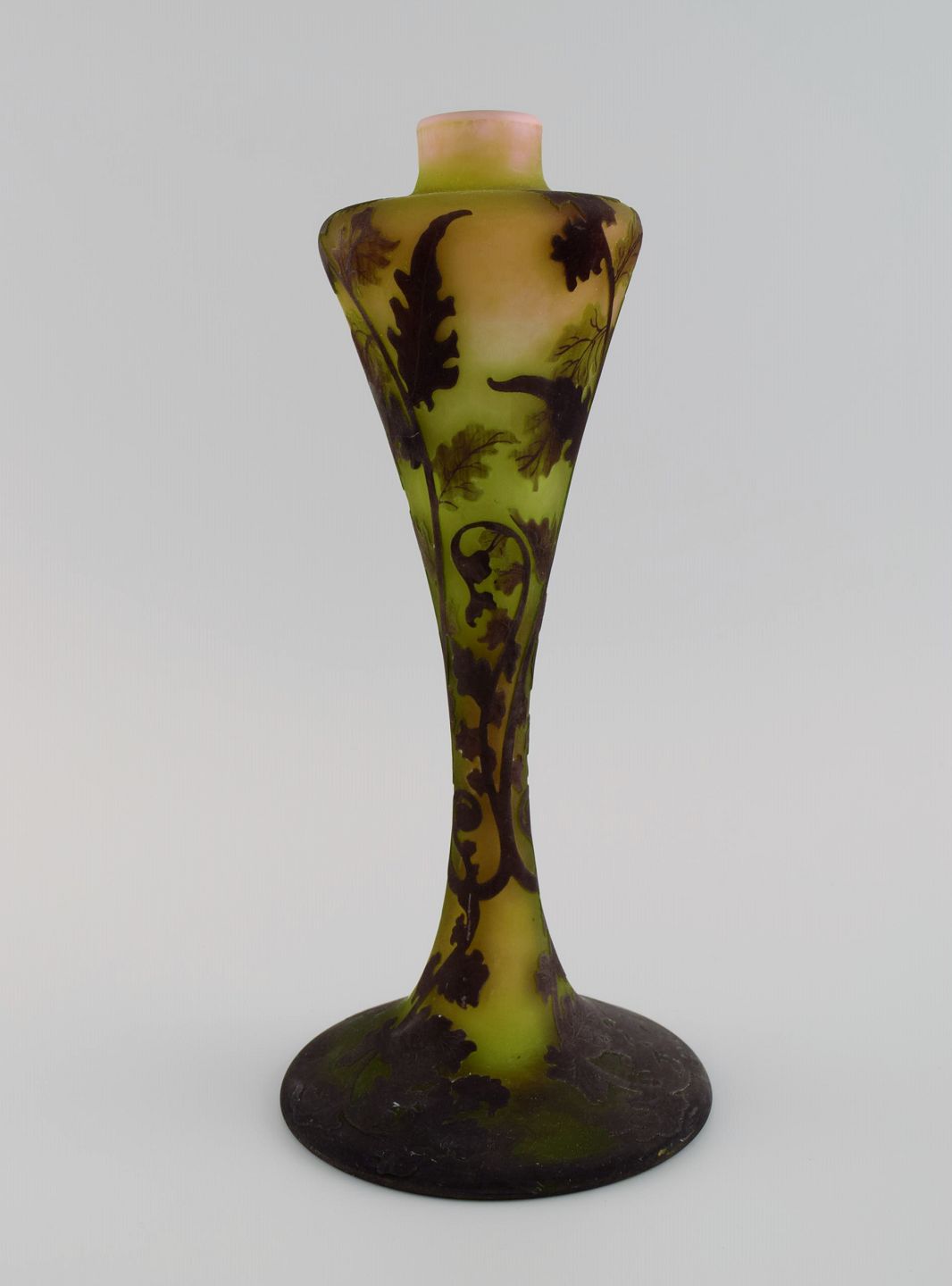 Émile Gallé (1846-1904), Frankrig. Vase i mundblæst kunstglas med overfang udskåret i form af bladværk. Ca. 1900. Måler: 28 x 13 cm. I flot stand. Signeret.