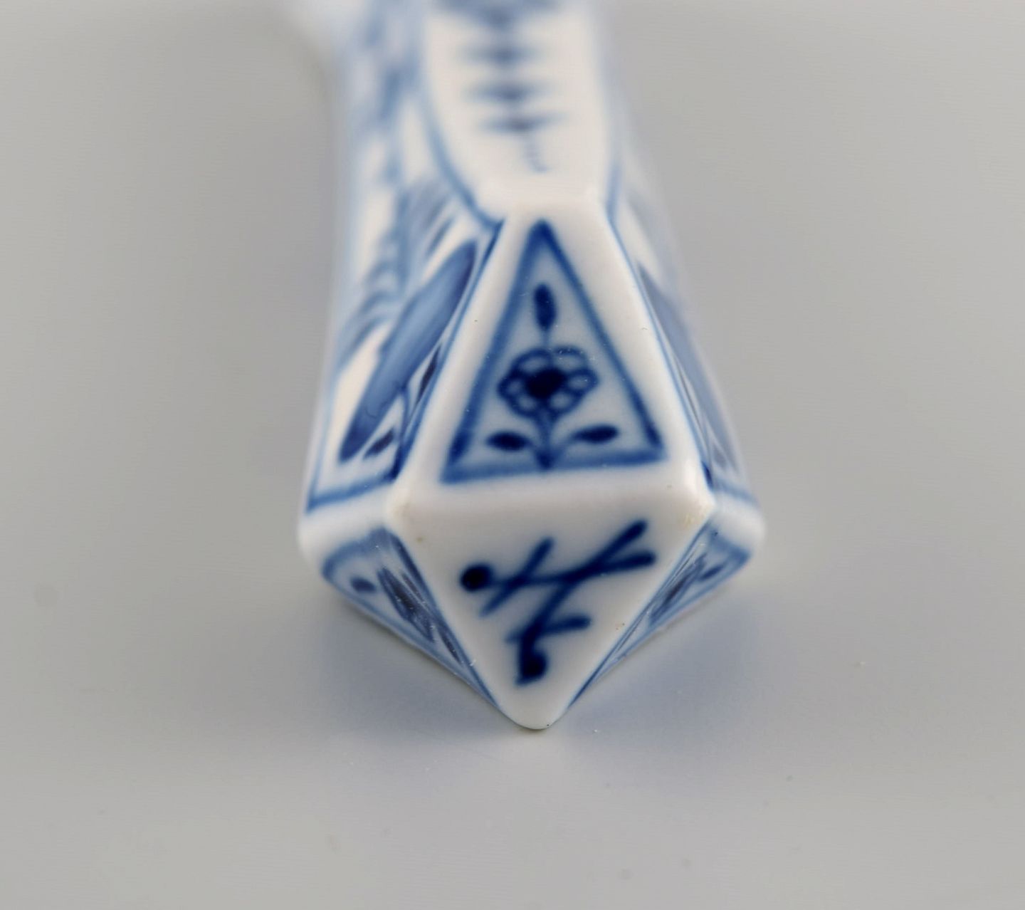 17 Meissen Løgmønstret knivstole i håndmalet porcelæn. Ca. 1900. Måler: 10 x 2 cm. I flot stand. Signeret. 1. Sortering.