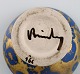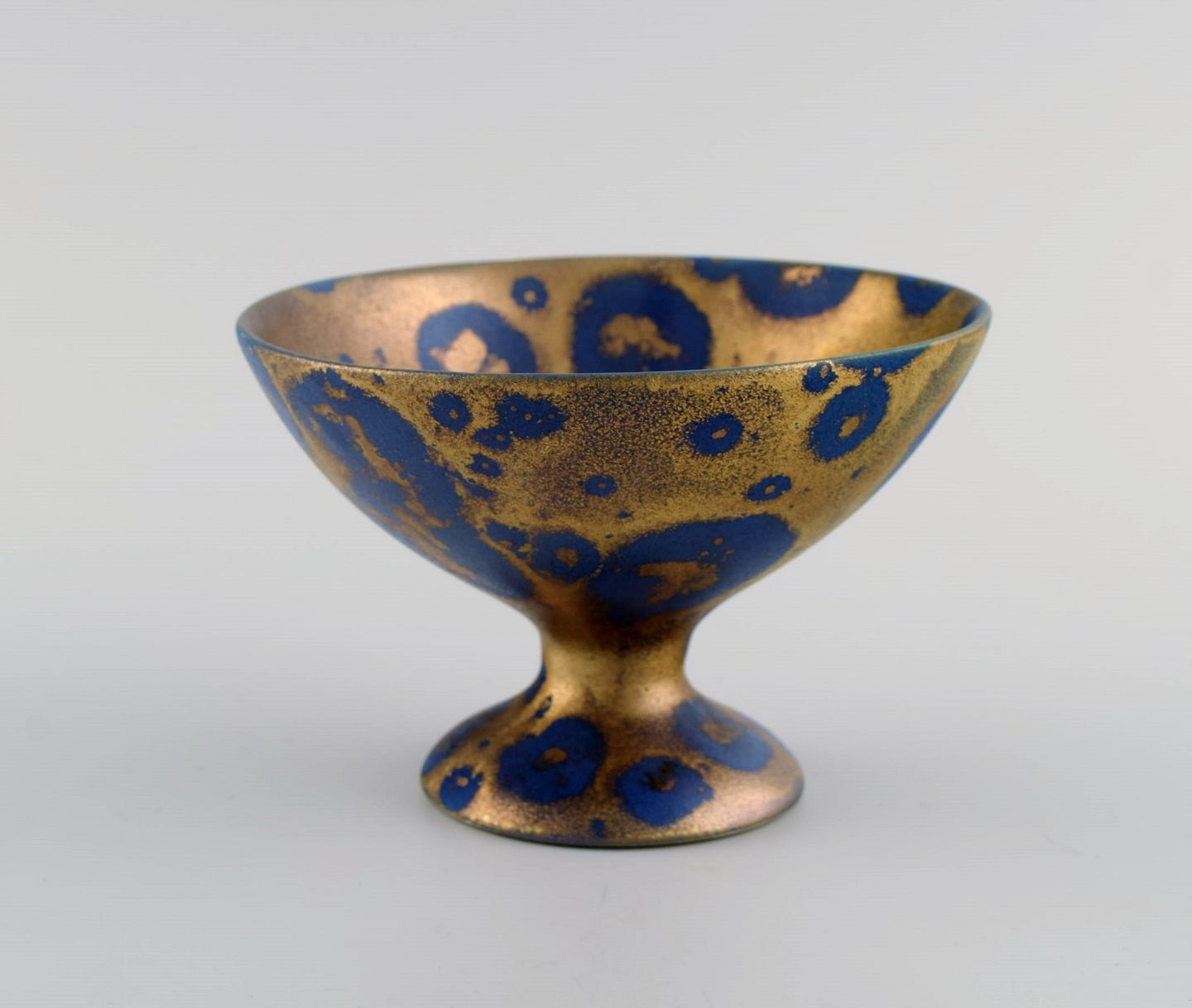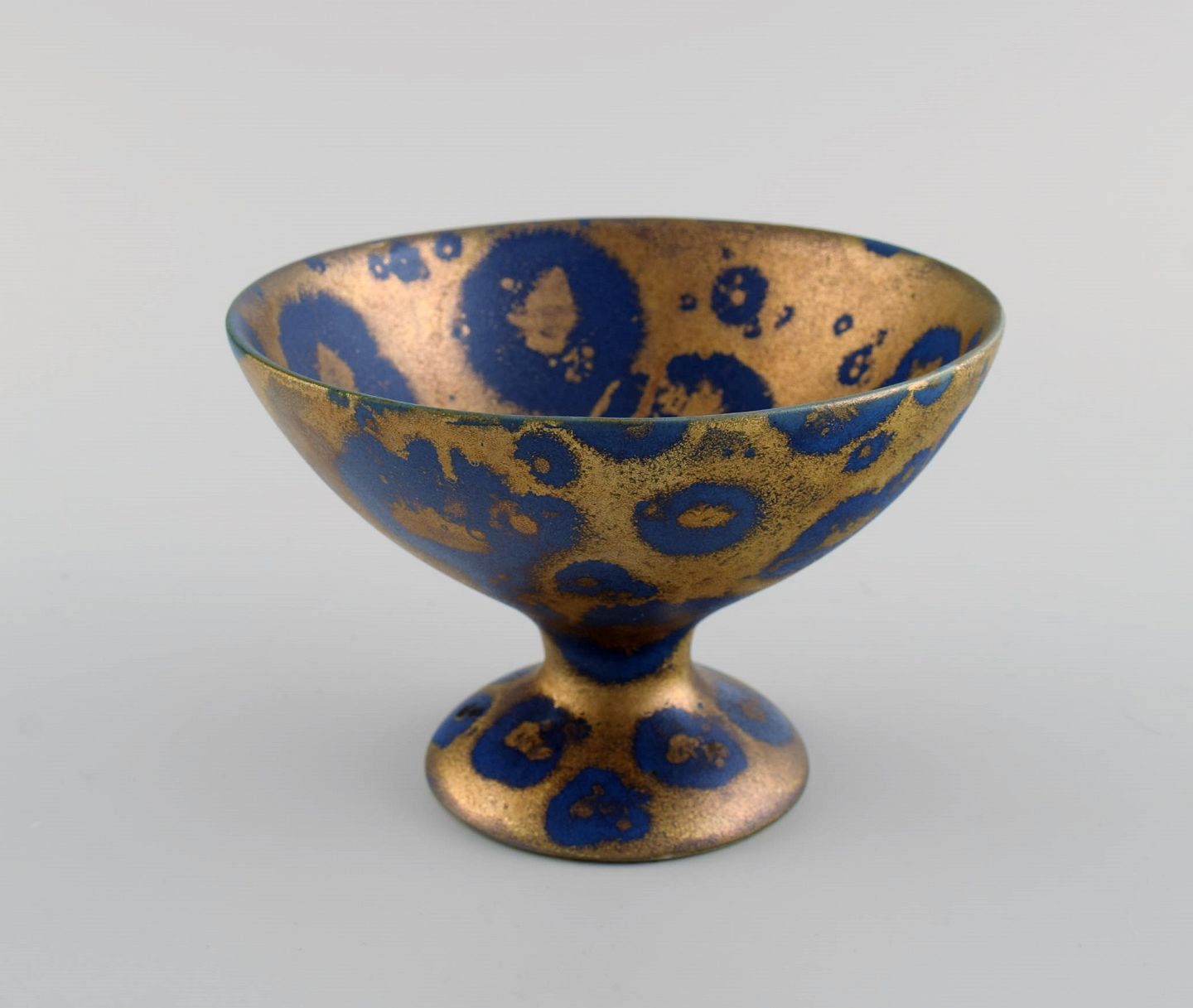 Lucien Brisdoux (1878-1963), Frankrig. Skål på fod i glaseret stentøj. Smuk glasur i guld og blå nuancer. 1930/40'erne.