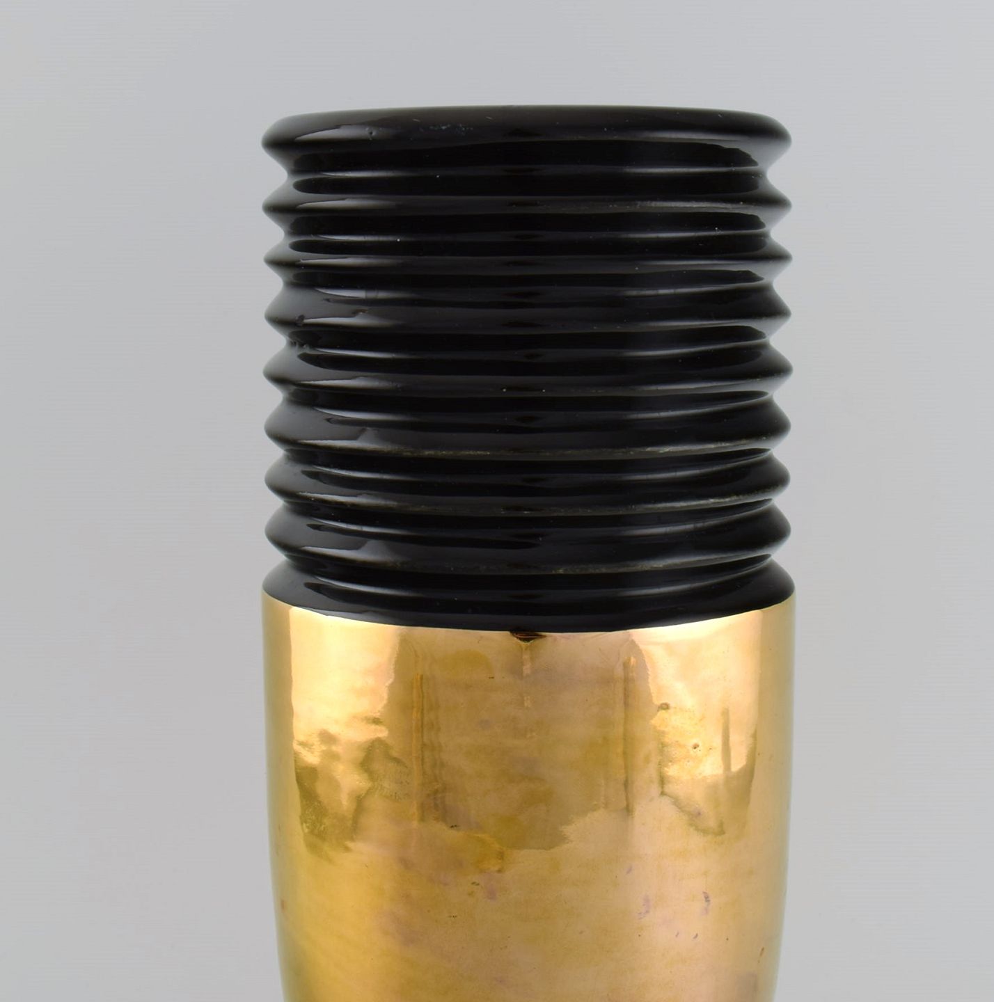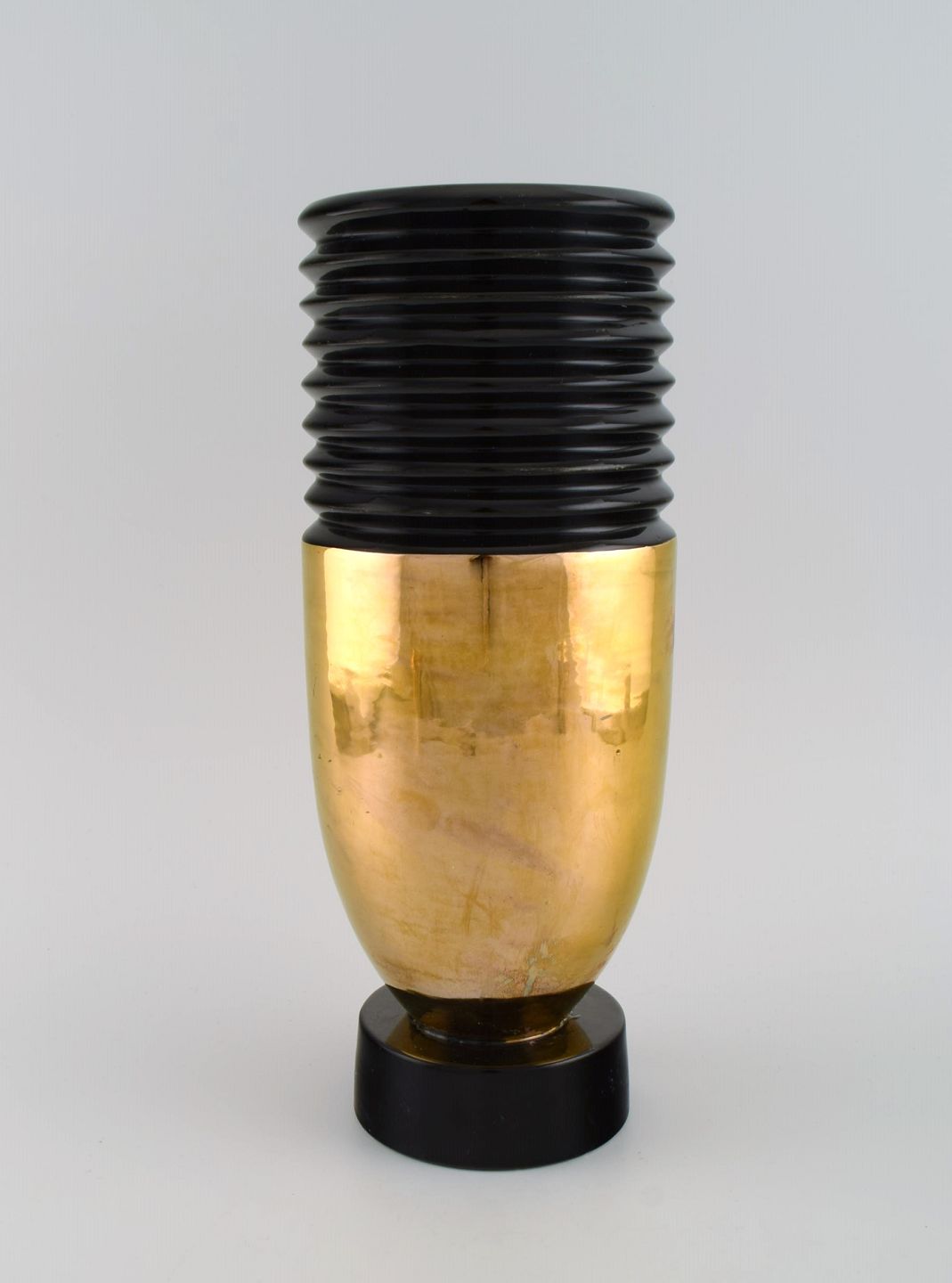 Robj, Paris. Stor art deco vase i glaseret keramik. Fransk design, 1940'erne. Måler: 32 x 12,5 cm. I flot stand. Signeret.