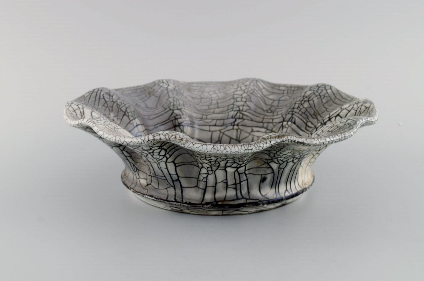 Svend Hammershøi for Kähler. Skål med bølget kant i glaseret stentøj. Smuk gråsort dobbeltglasur. 1930/40'erne. Måler: 25 x 7,5 cm. Stemplet. I flot stand.