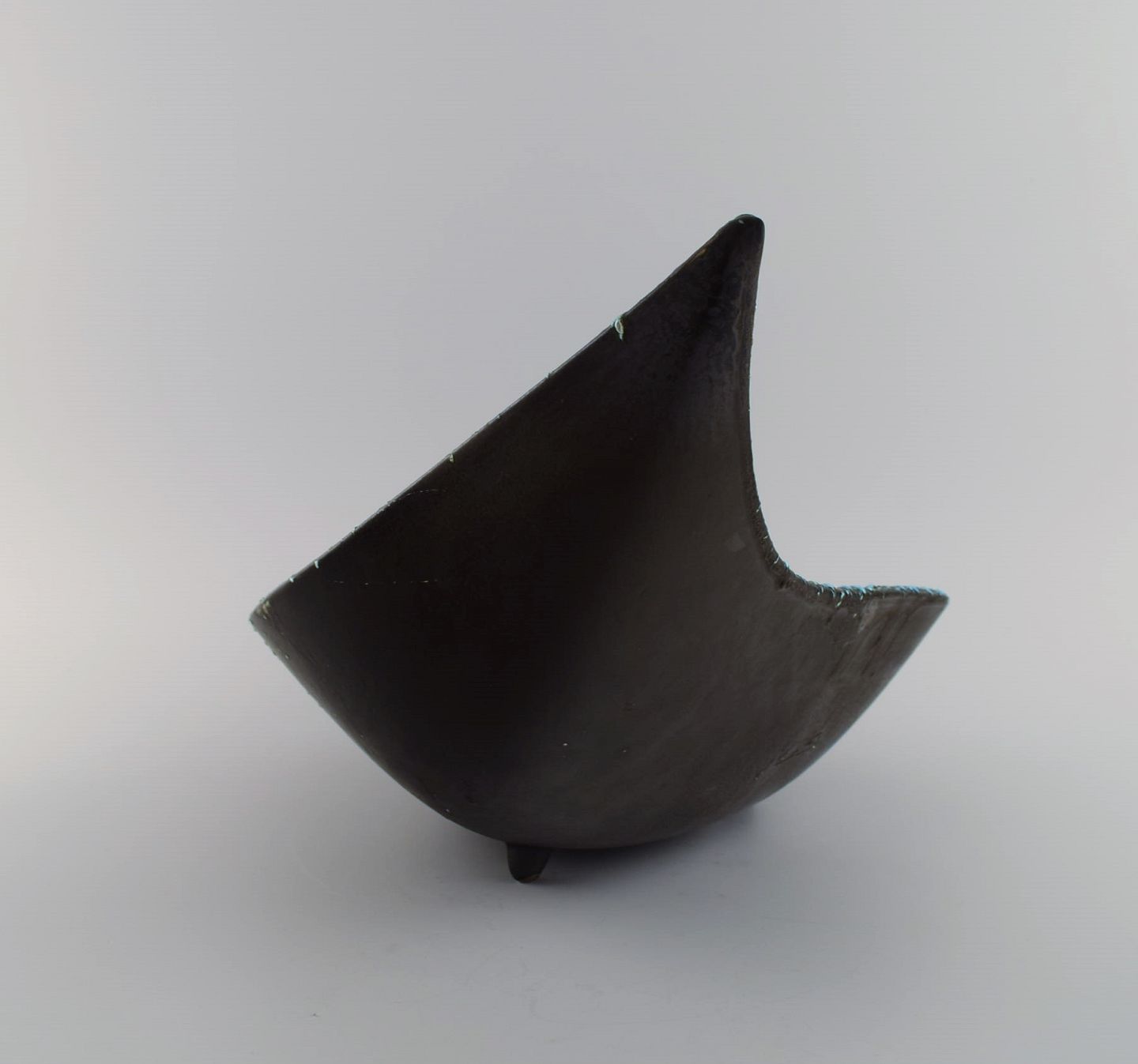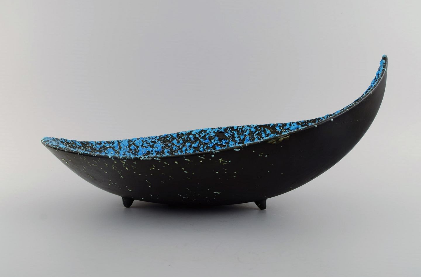 Stor freeform skål i glaseret keramik. Smuk glasur i azurblå nuancer. Frankrig, 1960'erne. Måler: 45 x 19 cm. I flot stand. Utydeligt stemplet.