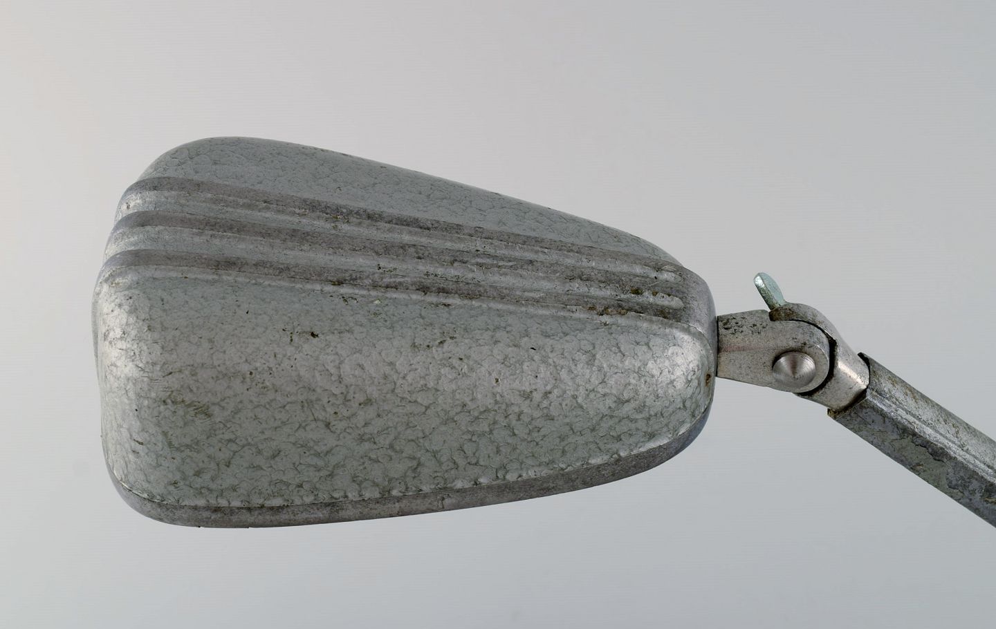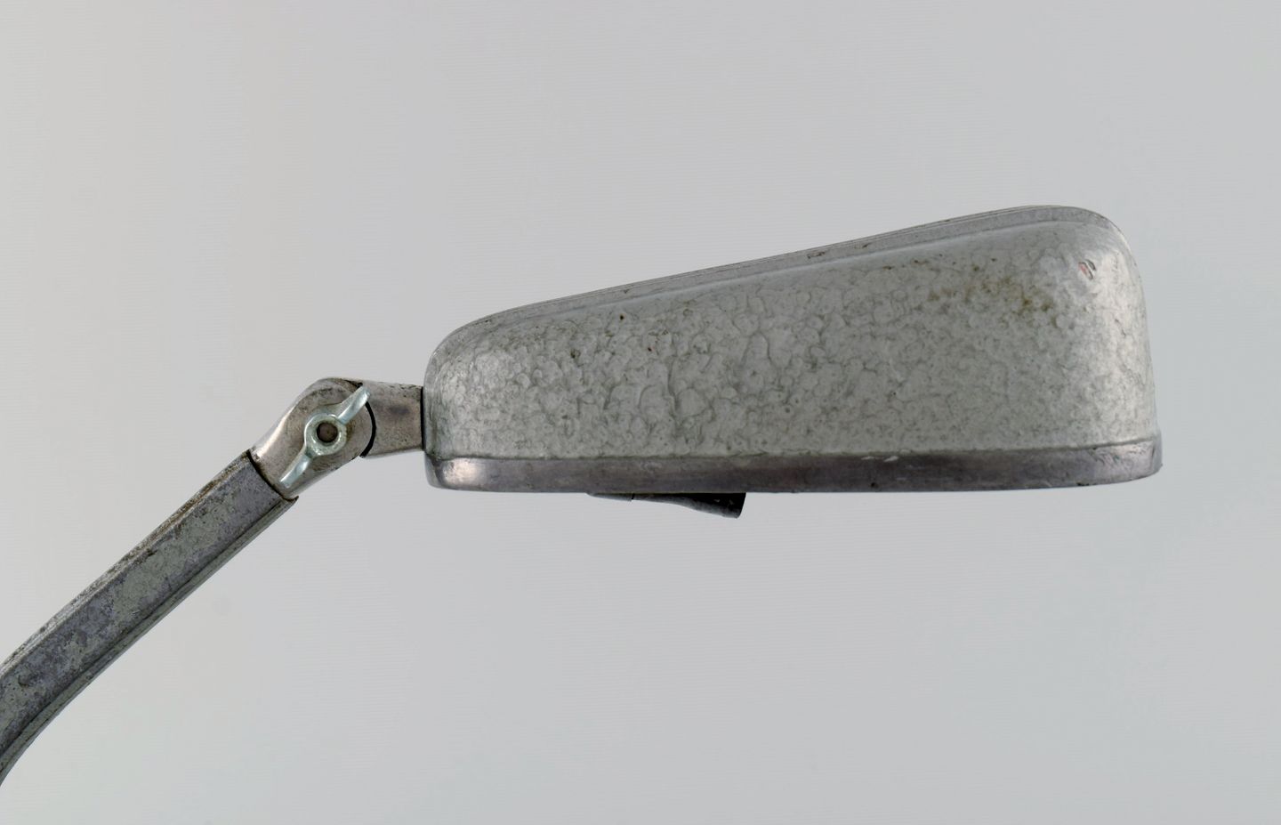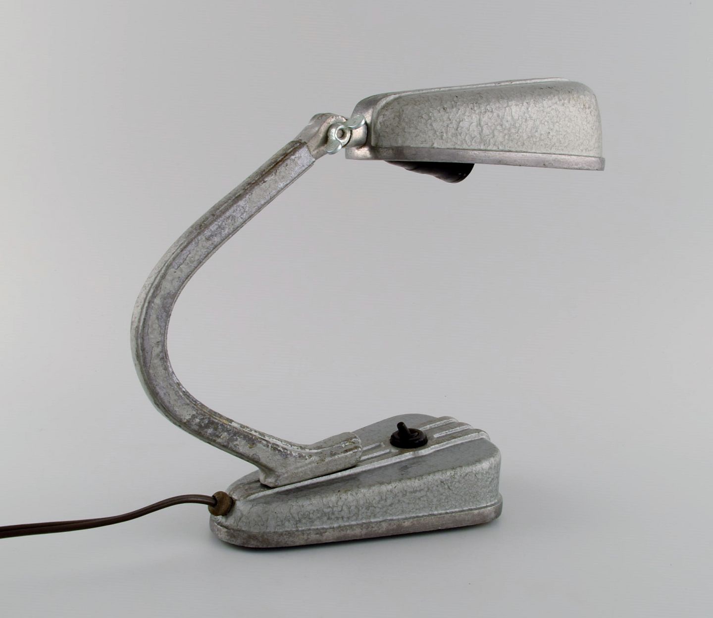 Sjælden art deco skrivebordslampe i original metallisk hammerlak. Industrielt design, midt 1900-tallet. Måler: 25 x 21 cm. I flot stand. Mindre brugspræg.