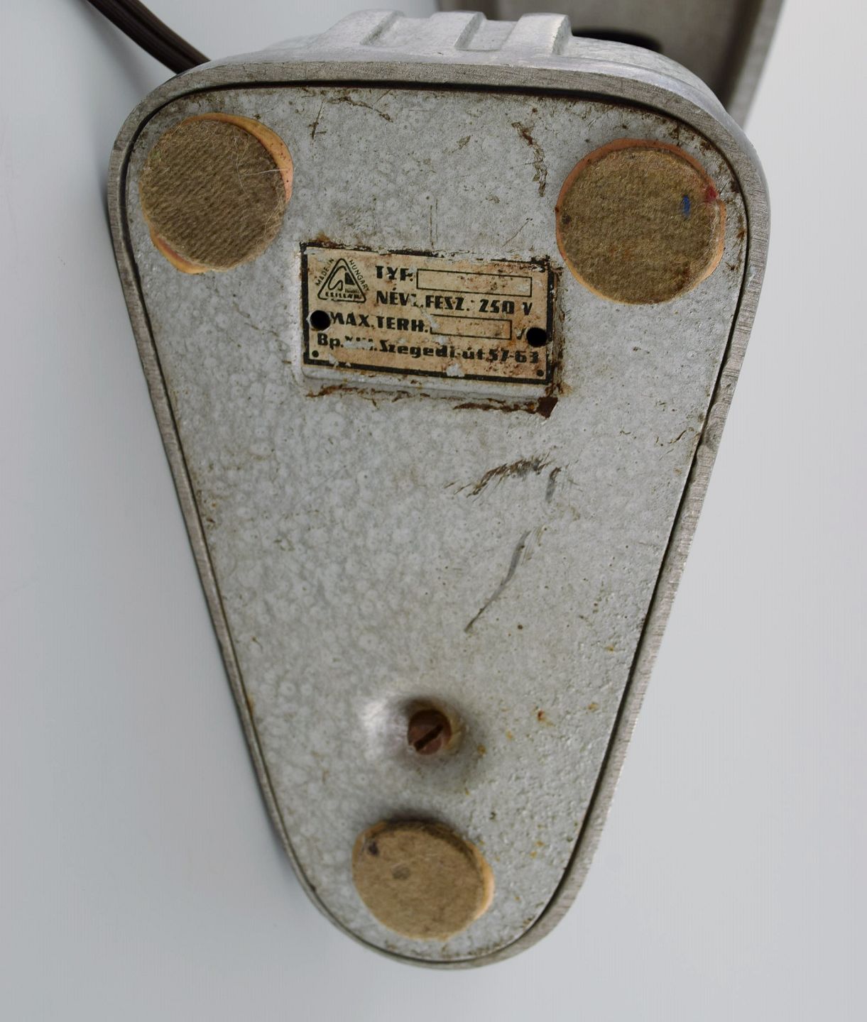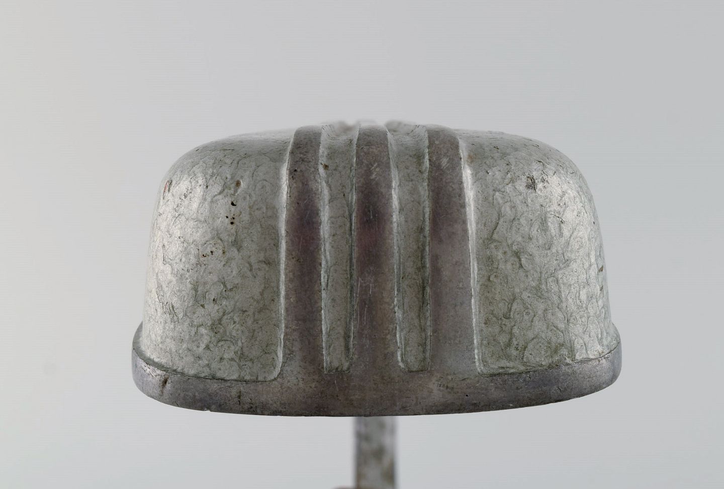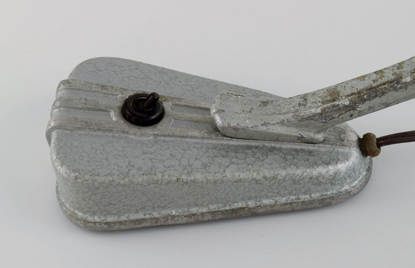 Sjælden art deco skrivebordslampe i original metallisk hammerlak. Industrielt design, midt 1900-tallet. Måler: 25 x 21 cm. I flot stand. Mindre brugspræg.
