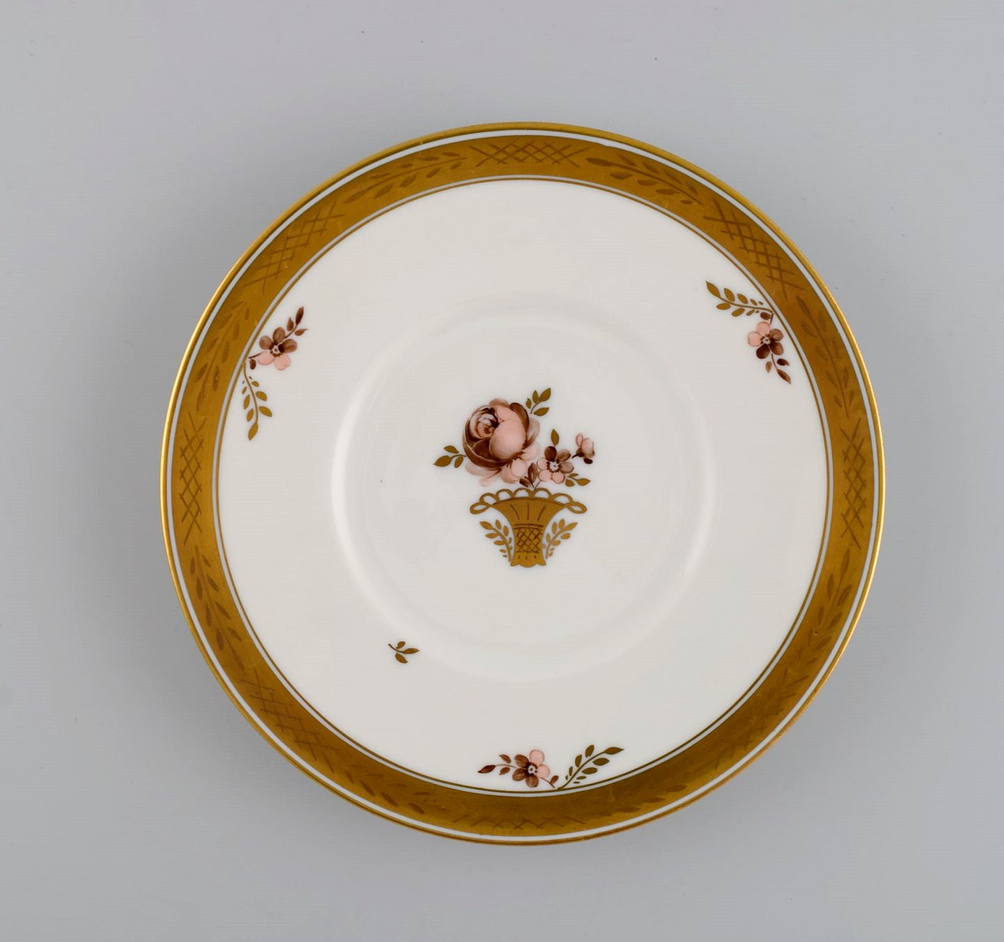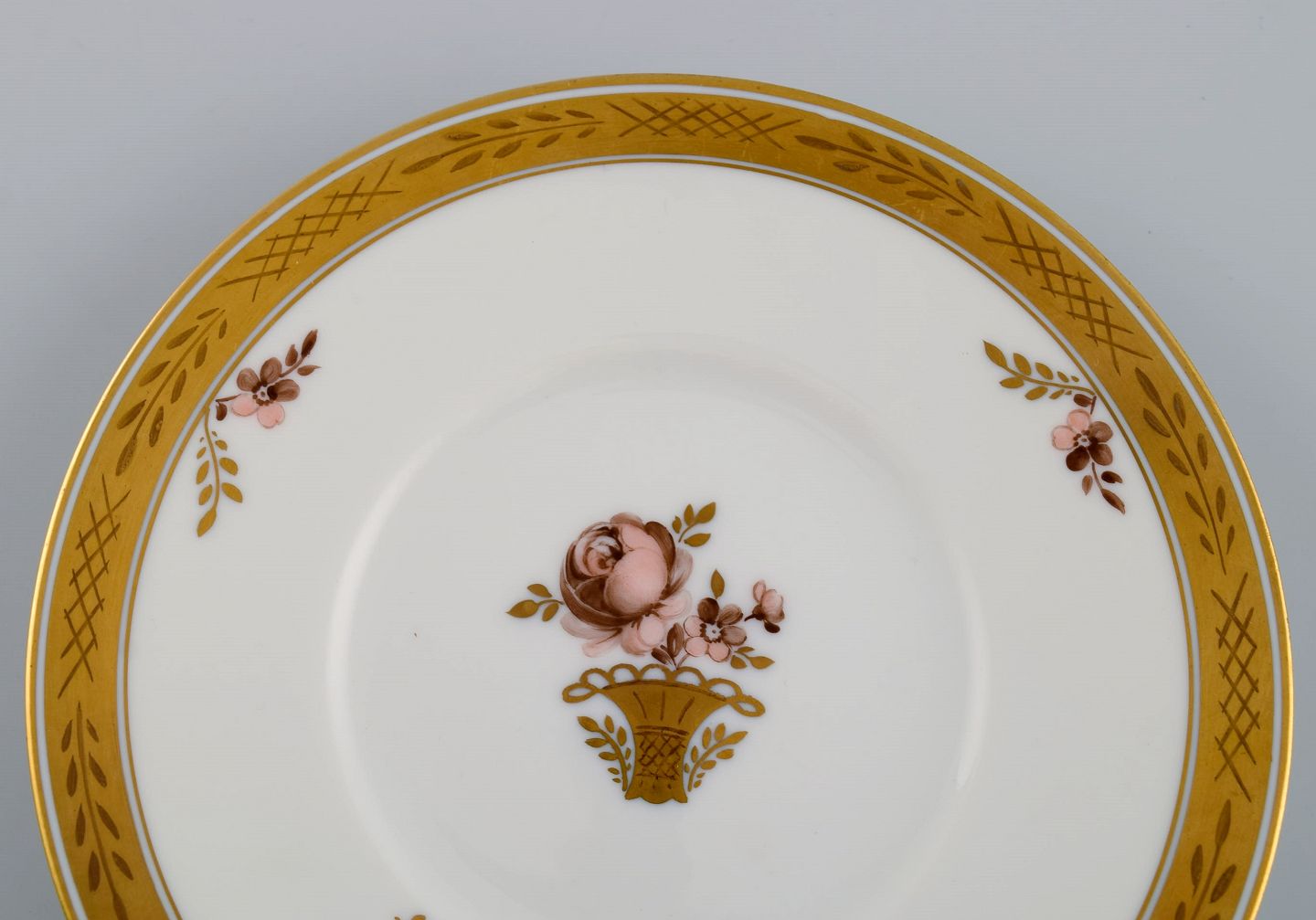 Twelve Royal Copenhagen Golden Basket cake plates in hand-painted porcelain with flowers and gold decoration. 1930s. Model number 595/10522.