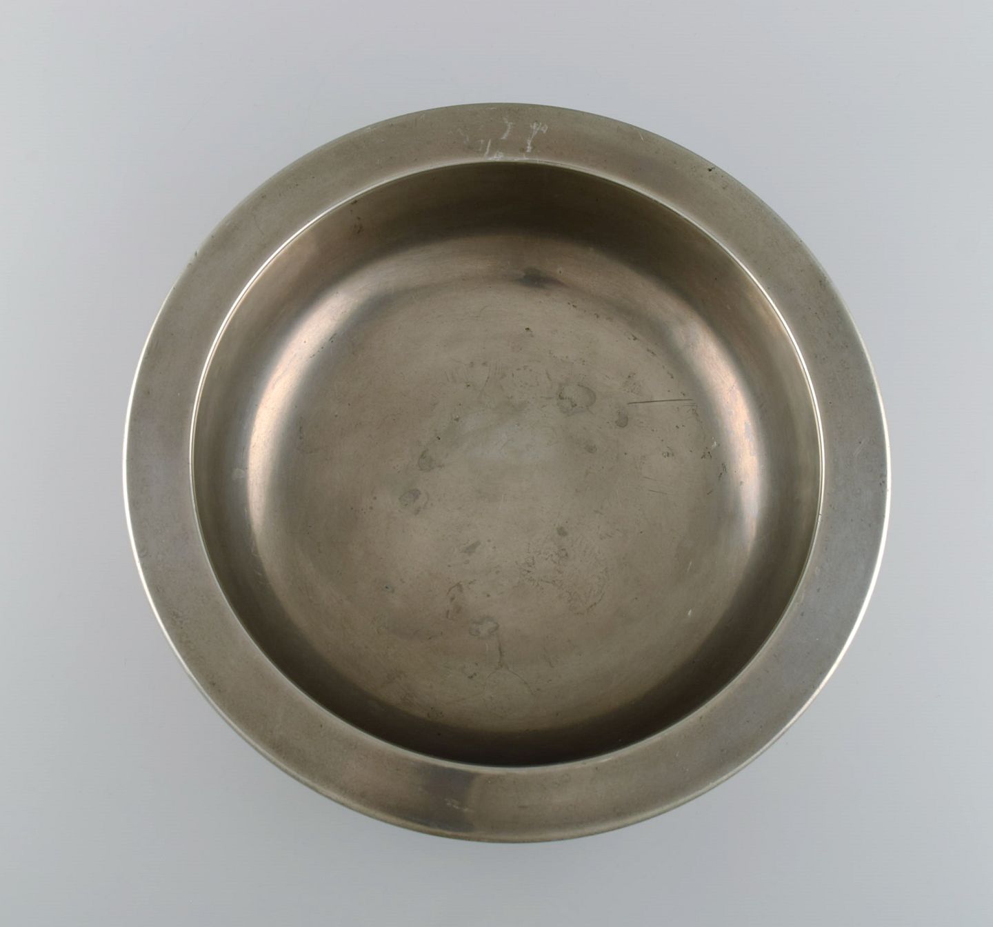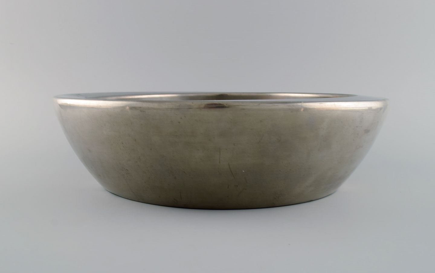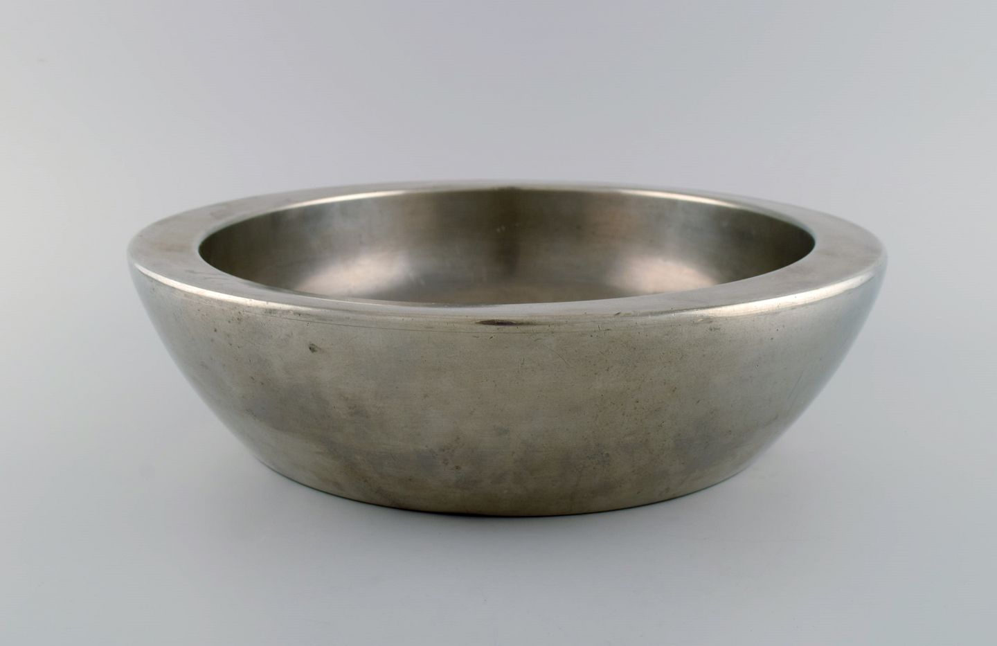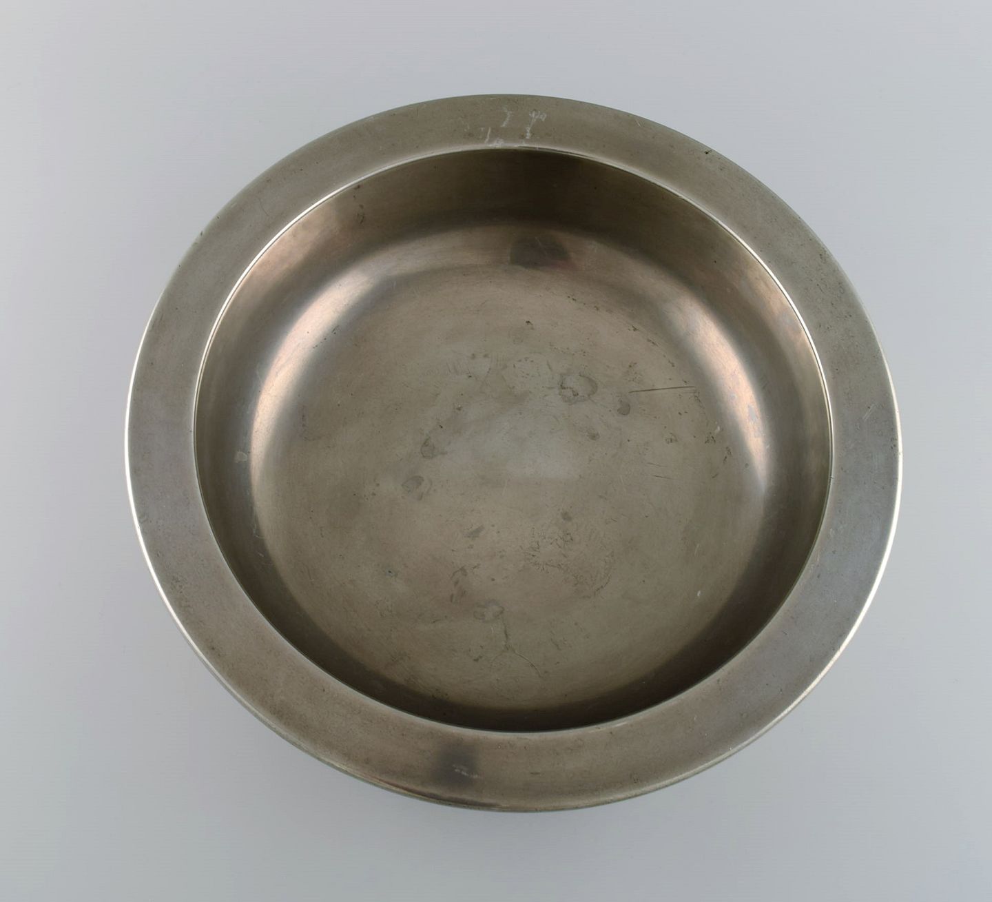 Astrid Fog for Just Andersen. Stor modernistisk tin skål. Stilrent design, midt 1900-tallet.